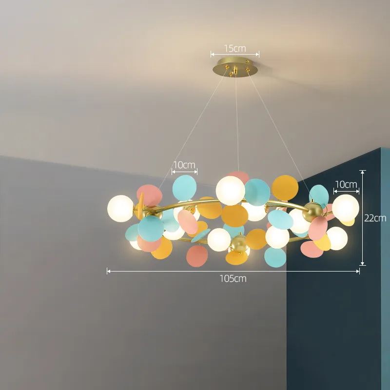 Светильник MATISSE R может стать центральным элементом интерьера комнаты или отправной точкой для его создания. Люстра кольцевая с матовыми плафонами и разноцветными дисками подойдет как для минималистичных и классических помещений, так и для современных и эклектичных. Она дает мягкий рассеянный свет, который заполняет всю комнату и создает особую атмосферу. Благодаря закрытым матовым плафонам она прекрасно подойдет для спальни.