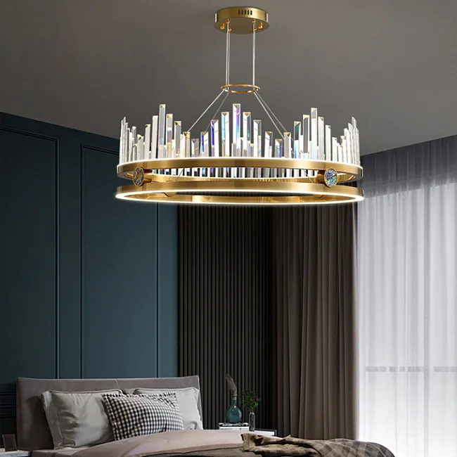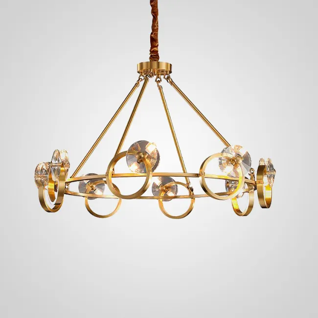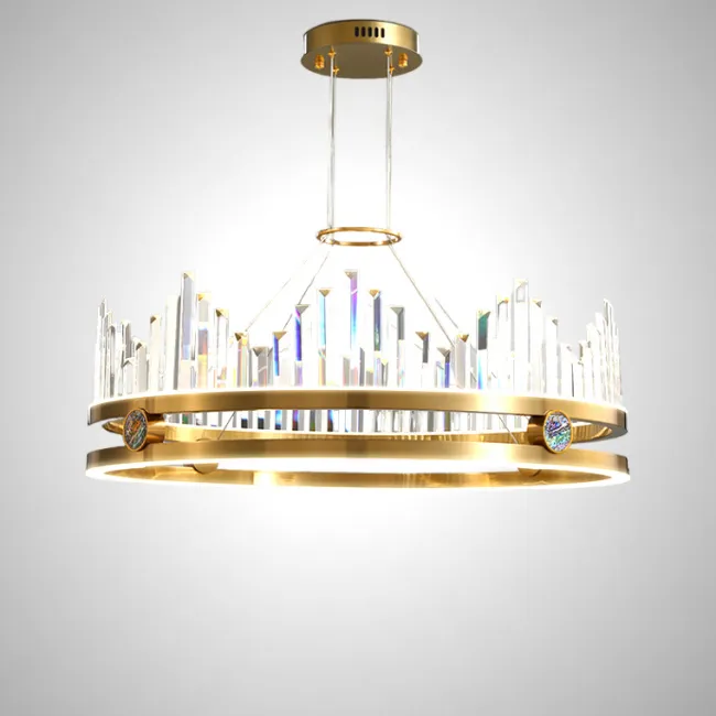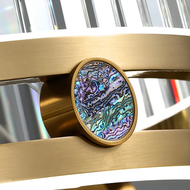 Главной особенностью этой люстры является ее хромированный кольцевой корпус, который придает ей изящный и блестящий вид. Превосходное качество хрусталя использованного для декоративных бусин делает каждый элемент этой люстры настоящим произведением искусства.
