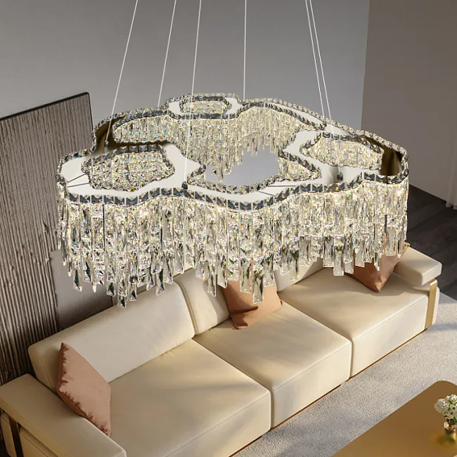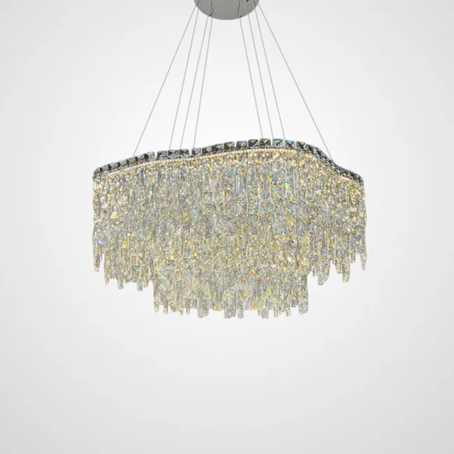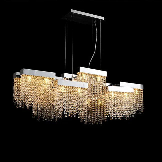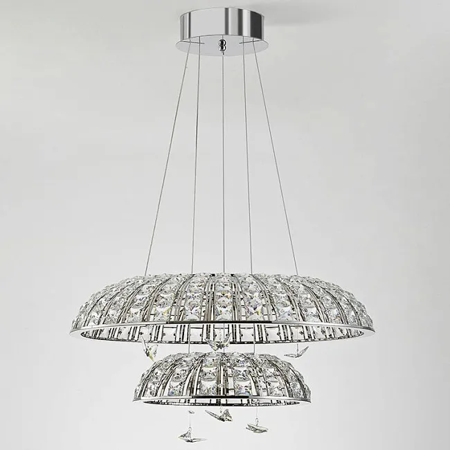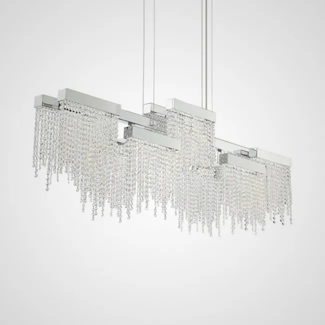 Хромированный корпус, придает люстре изящный и блестящий вид. Хрустальные бусины, свисающие на цепочках, добавляют легкости и изысканности и, к тому же, отражают световые лучи, создавая игру красок и оттенков. Они с легкостью впишутся в любой интерьер, придав ему роскошный и современный вид.