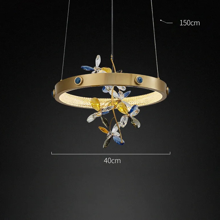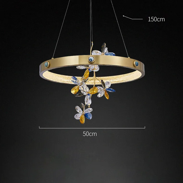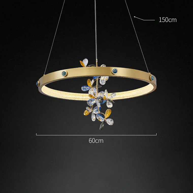Серия дизайнерских люстр с декоративными хрустальными цветами и круглыми вставками из агатов по кольцевому корпусу с внутренней LED-подсветкой