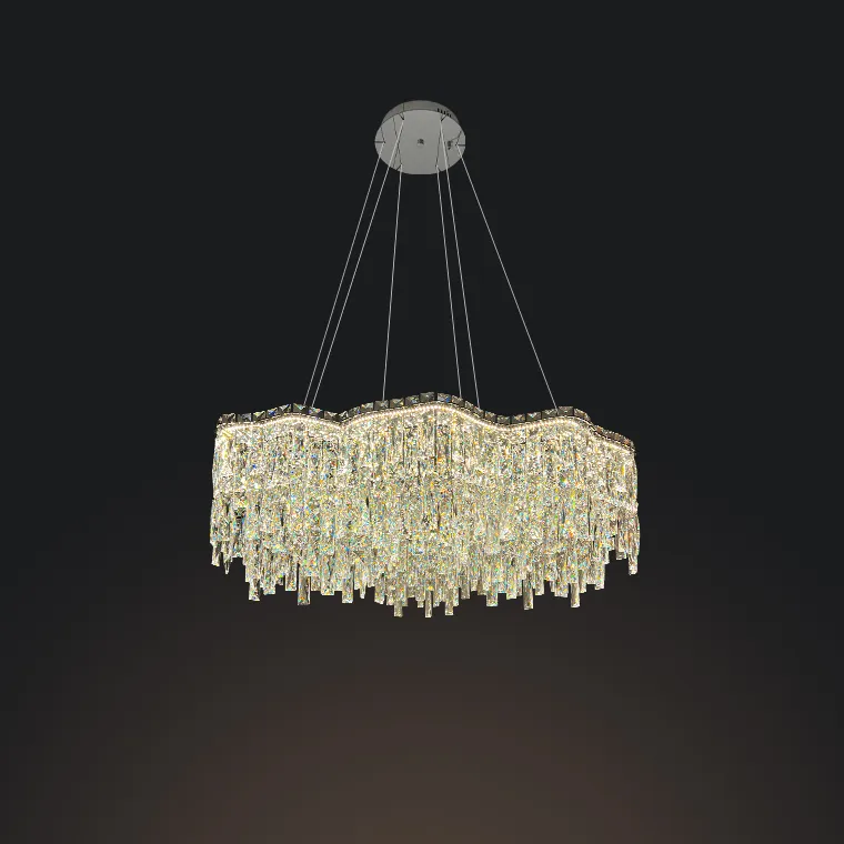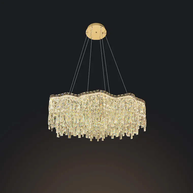 Серия светодиодных люстр с прямоугольными подвесками из хрусталя на закольцованном гексагональном корпусе