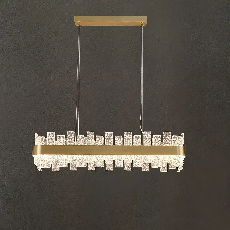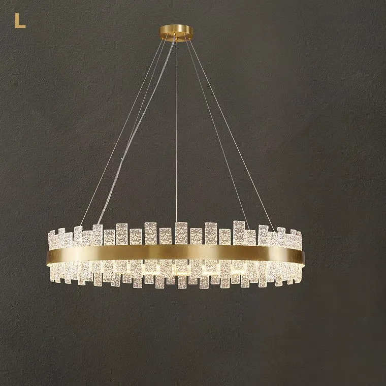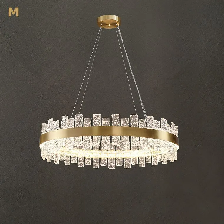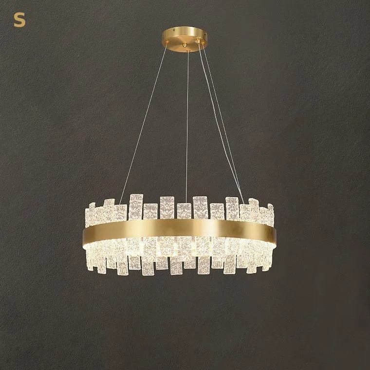 Серия кольцевых люстр с плафоном из рельефных стеклянных пластин прямоугольной формы