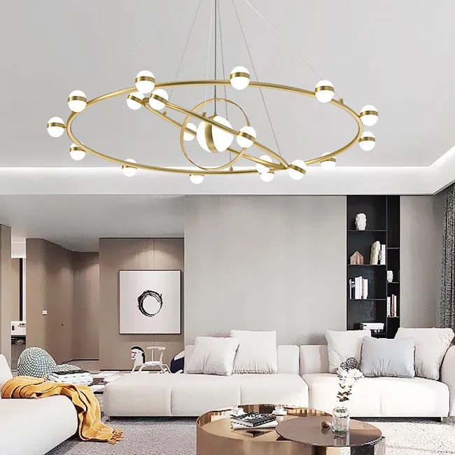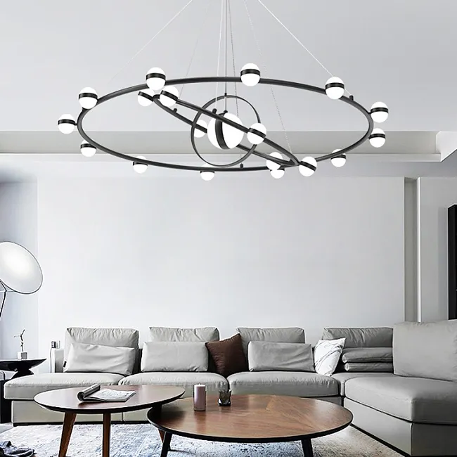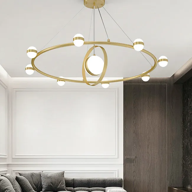 Серия светодиодных люстр с плафонами шарообразной формы с эффектом льда на кольцевом корпусе
