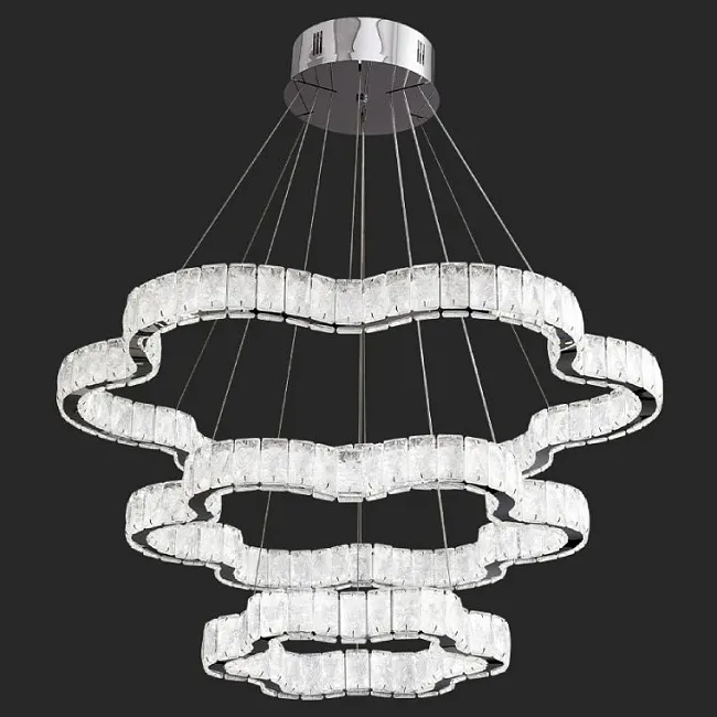 Представляем вам серию инновационных кольцевых светодиодных светильников, созданных для тех, кто ценит изысканный минимализм и современный комфорт. Эти уникальные светильники оснащены парными изогнутыми рассеивателями из рельефного стекла, которые придают пространству особую текстуру и игру света. Хромированный корпус и струнный подвес добавляют изделию визуальной легкости.