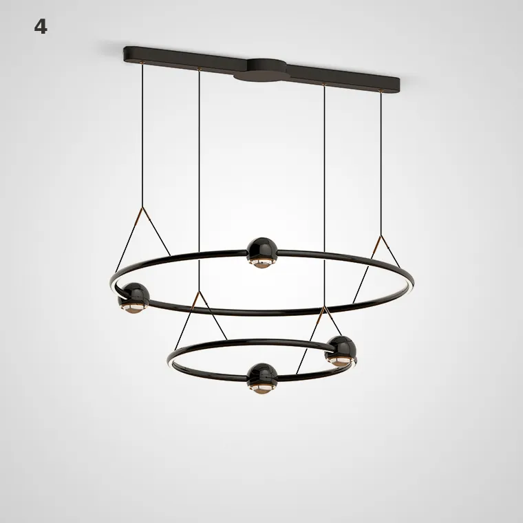 Серия кольцевых светодиодных люстр с подвижными шарообразными плафонами с оптической линзой