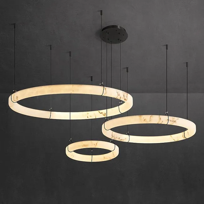 Серия кольцевых люстр в виде мраморного кольца c характерным рисунком и встроенной светодиодной подсветкой