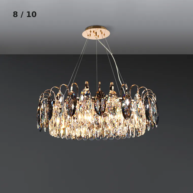 Высота подвеса составляет 150 см, что позволяет создать гармоничный эффект в вашем помещении. Материалы изготовления, такие как металл и хрусталь K9, обеспечивают долговечность и сохранение первоначального внешнего вида.