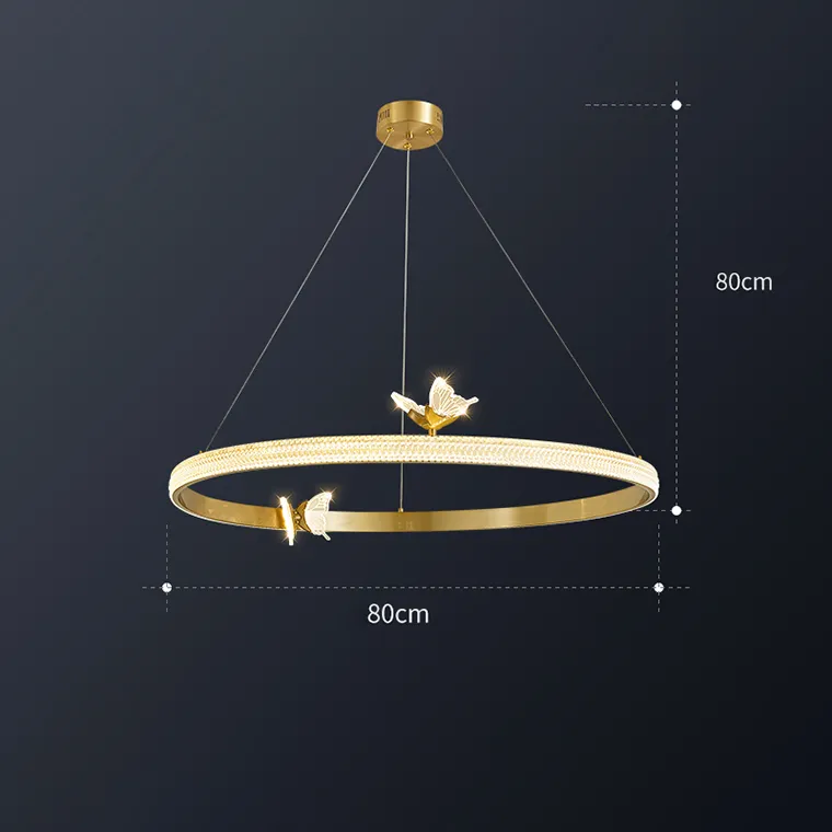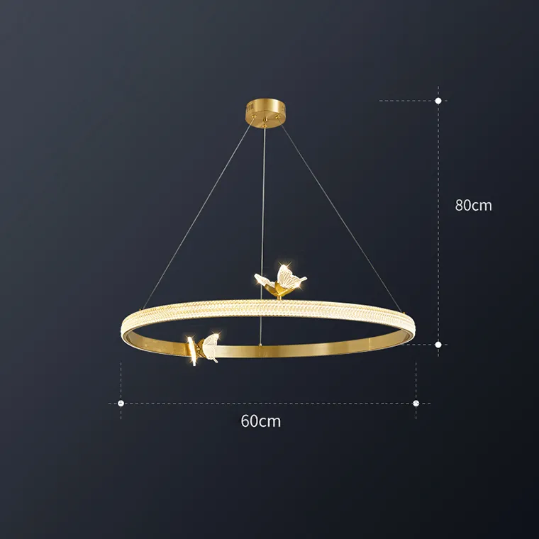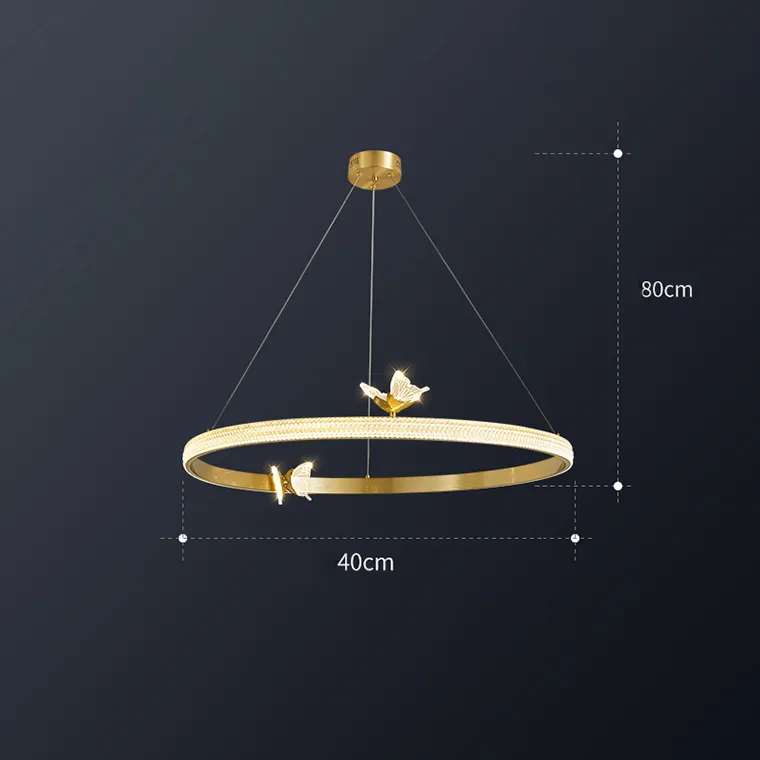 Кольцевой светильник в латунном корпусе с декоративными светящимися бабочками на каркасе с LED-свечением