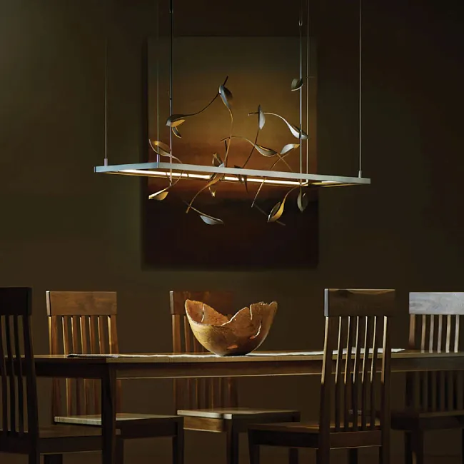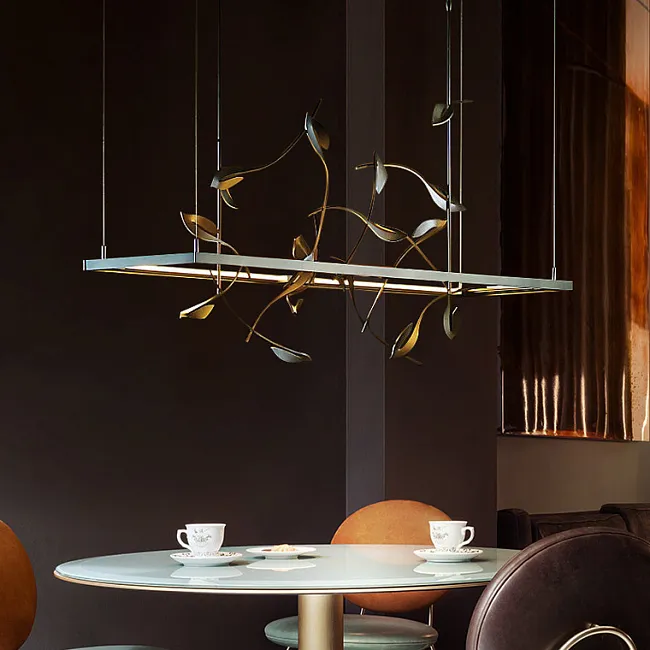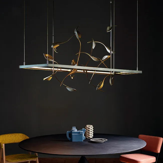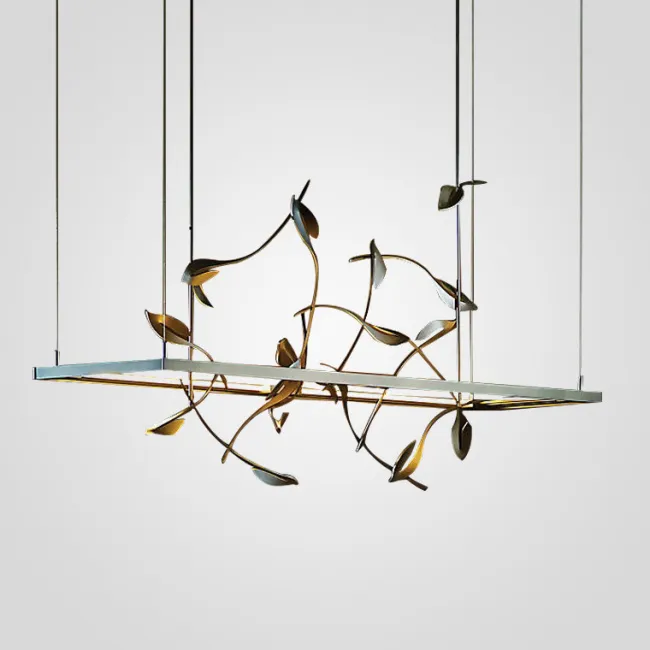 Представьте, как в вашем пространстве оживает магия природы, воплощенная в металле и стекле. Ветвистый каркас, словно древо, усеянный изысканными медными и стеклянными листьями, создает ощущение, будто в вашем доме поселился кусочек сказочного леса. Каждый листок, тщательно проработанный, играет с лучами света, рассыпая по комнате мягкие блики и тени.