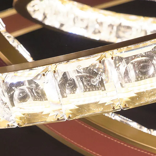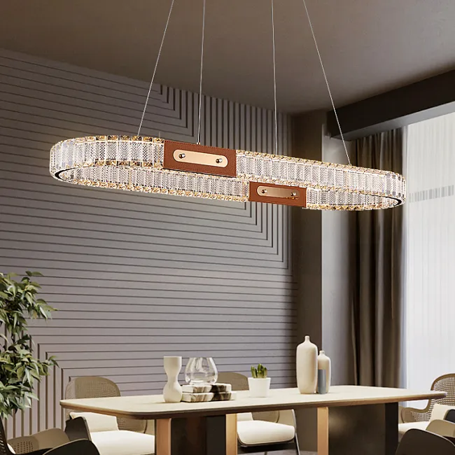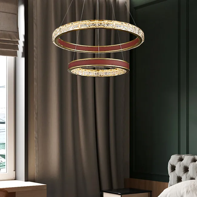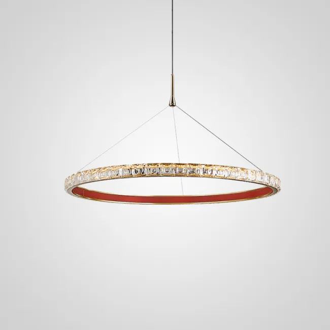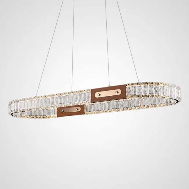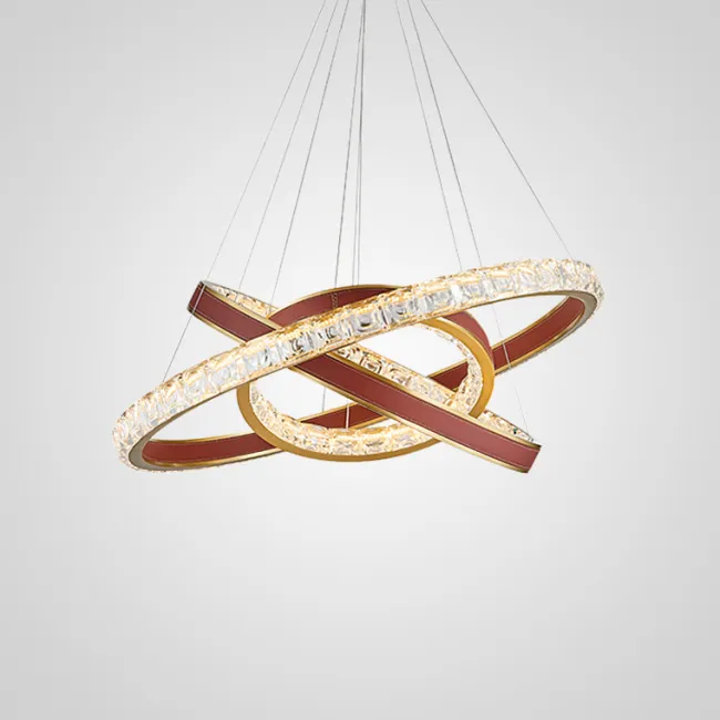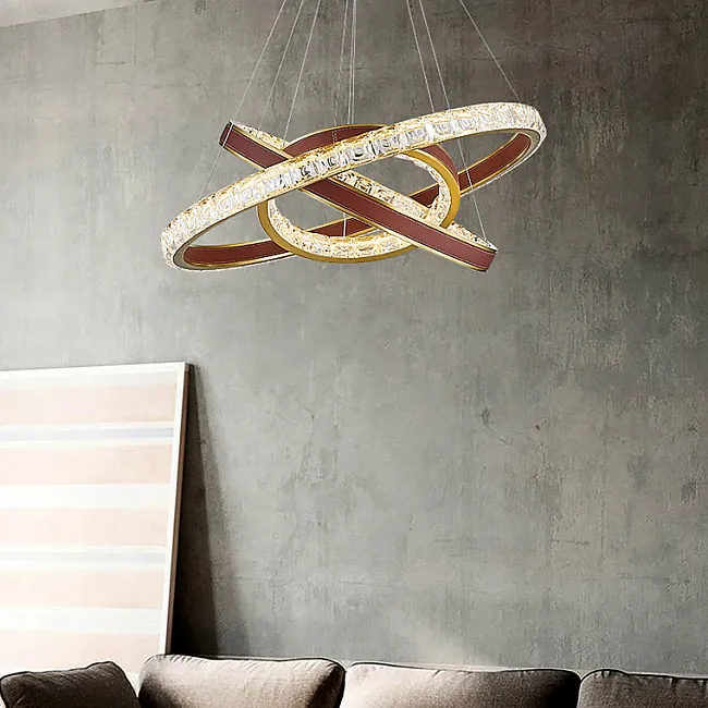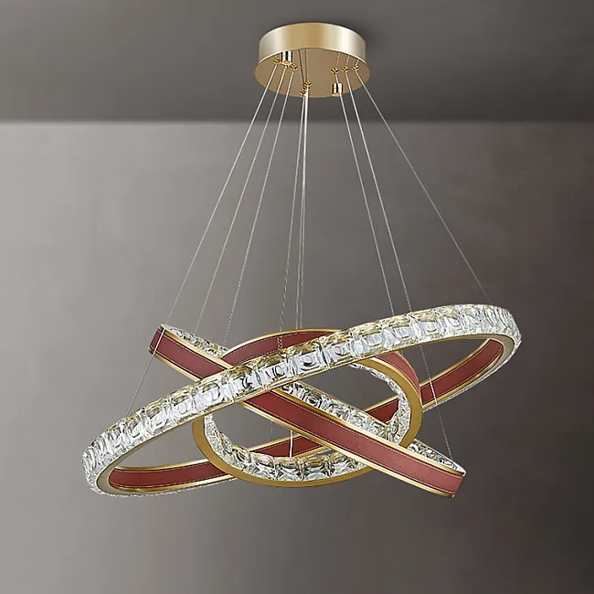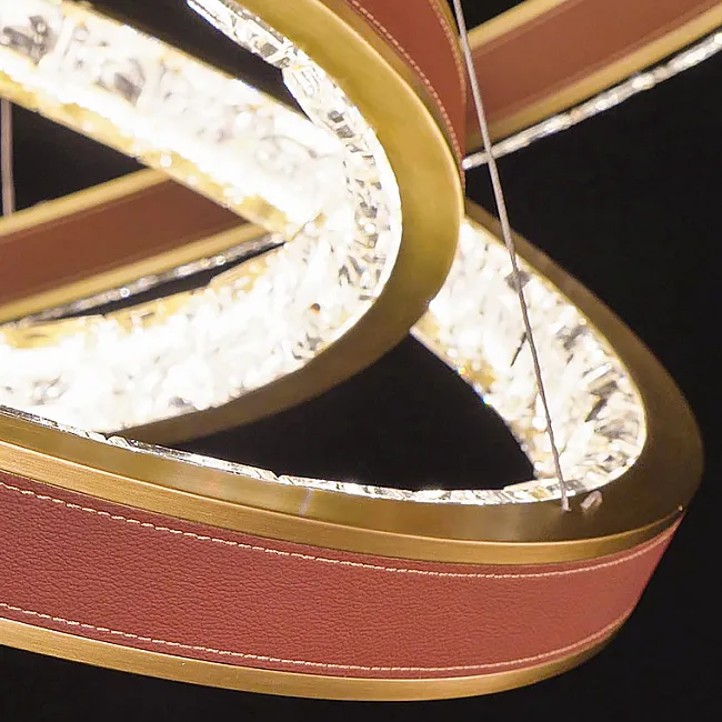 Серия кольцевых светодиодных люстр с рельефными хрустальными рассеивателями и отделкой из натуральной кожи