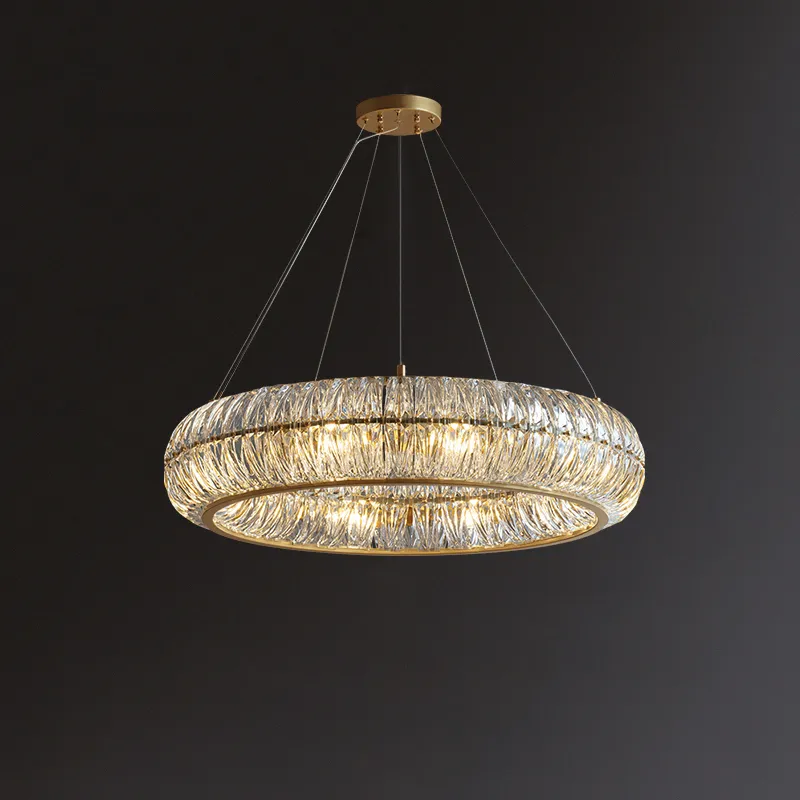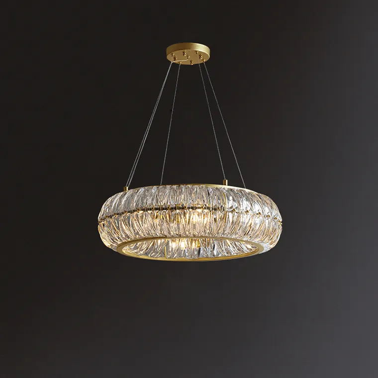 Кольцевая люстра PLONIA - идеальный выбор для тех, кто хочет добавить в свой дом изящества и элегантности. Серия кольцевых люстр с абажуром из рельефных хрустальных пластин скругленной формы создает потрясающий эффект блеска и переливов, привнося в ваш интерьер неповторимый стиль.