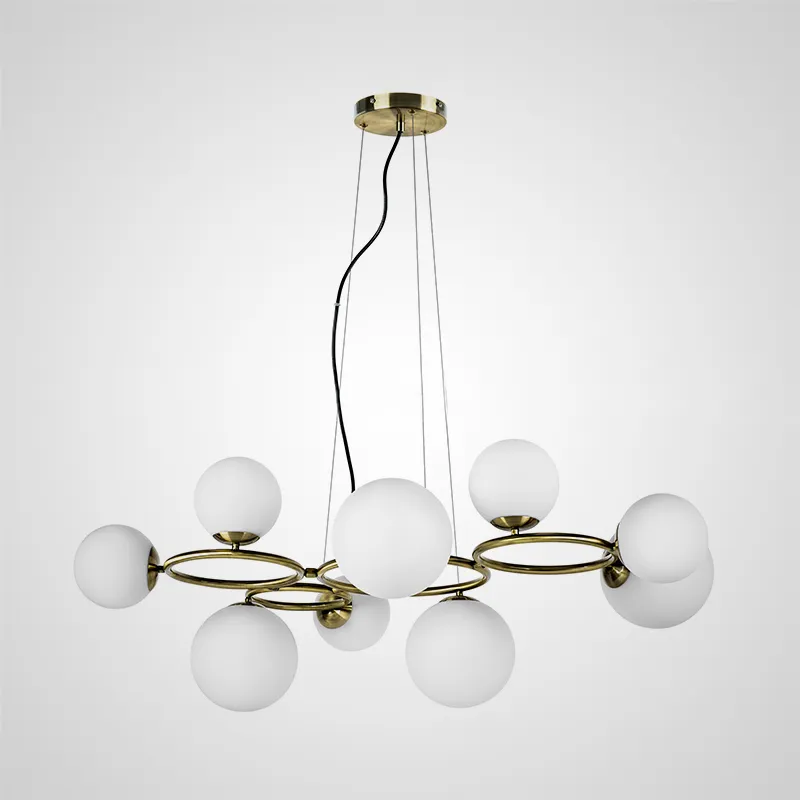 Люстра POLDI с плафонами шарами разного диаметра на кольцевом каркасе