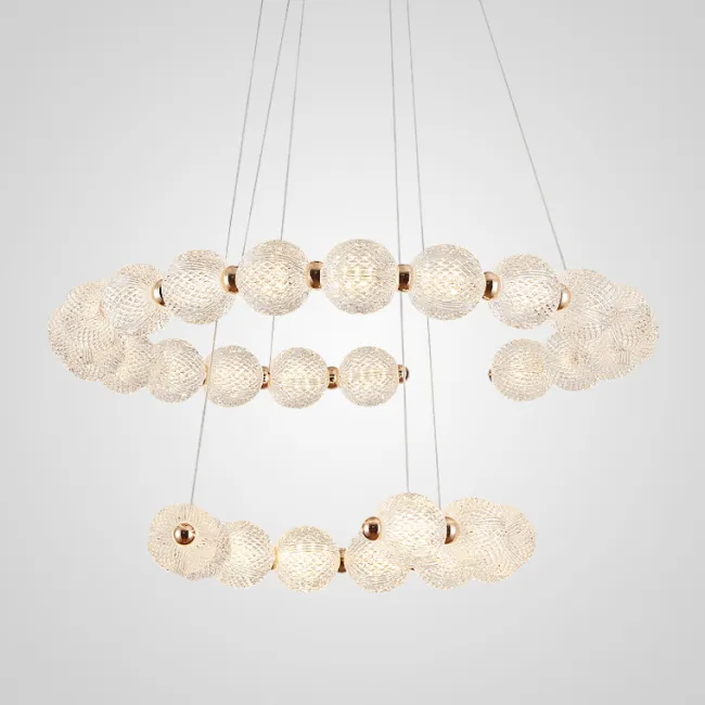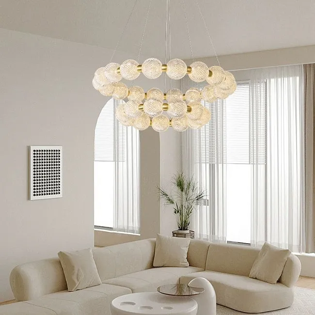 Каждая люстра оснащена струнными подвесами, что позволяет легко регулировать ее высоту в соответствии с индивидуальными потребностями и требованиями интерьера.