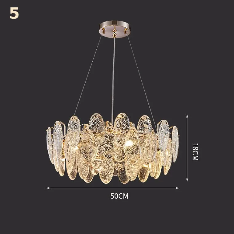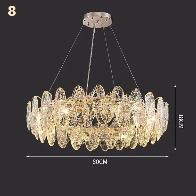 Серия кольцевых дизайнерских люстр c рельефными хрустальными рассеивателями эллиптической формы