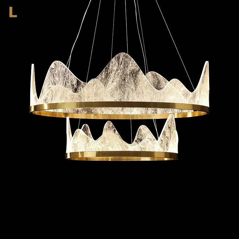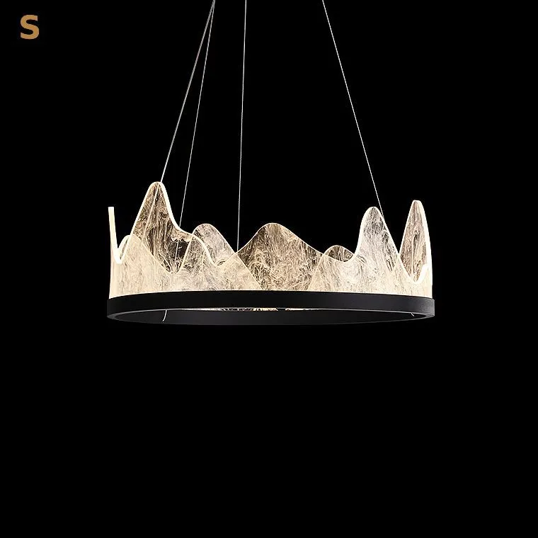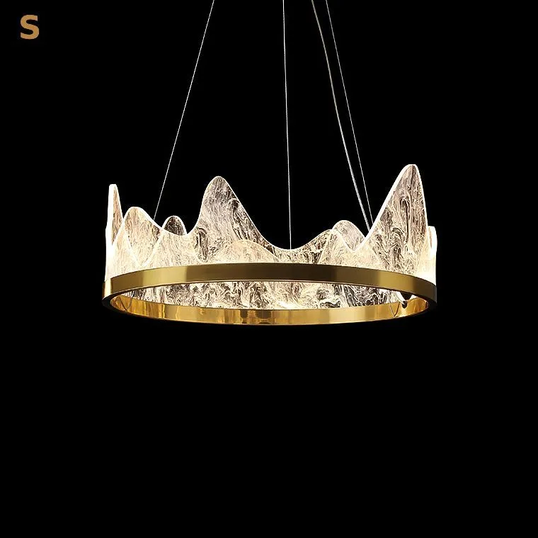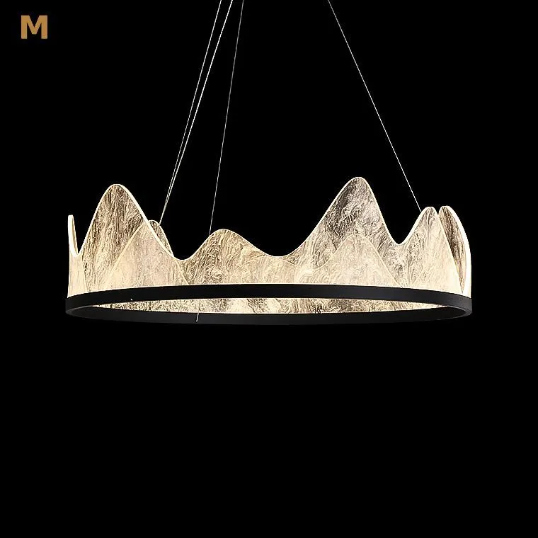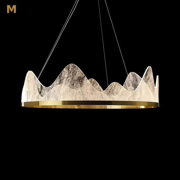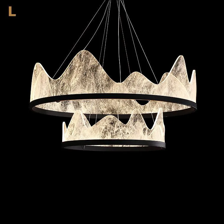 Серия кольцевых люстр на струнном подвесе с рельефным абажуром неправильной формы