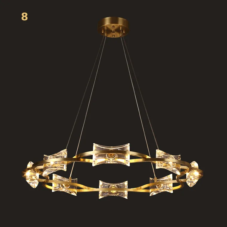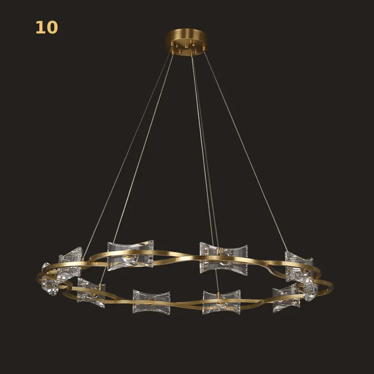 Серия кольцевых люстр с прозрачными плафонами в виде четырехугольных хрустальных слитков