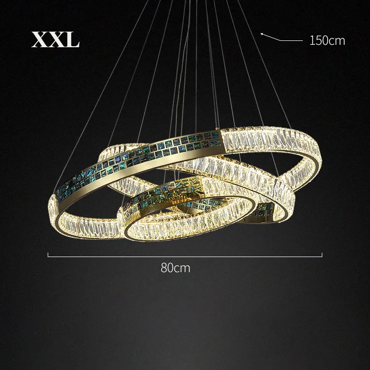 Серия кольцевых дизайнерских люстр с хрустальными гранеными кристалами и вставками из перламутра
