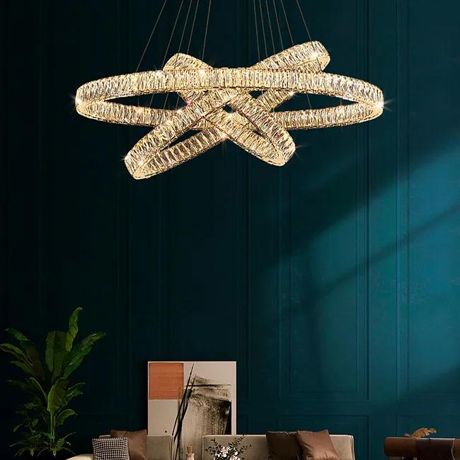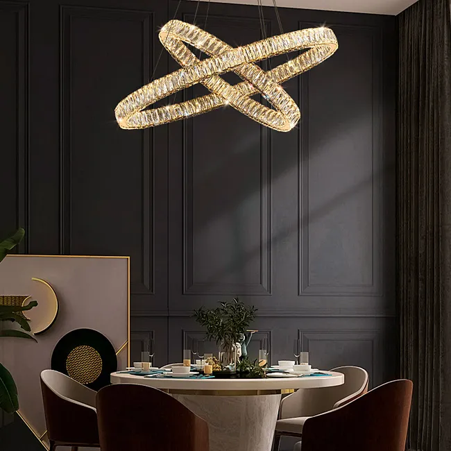 Серия кольцевых дизайнерских люстр с хрустальными гранеными кристалами и вставками из перламутра