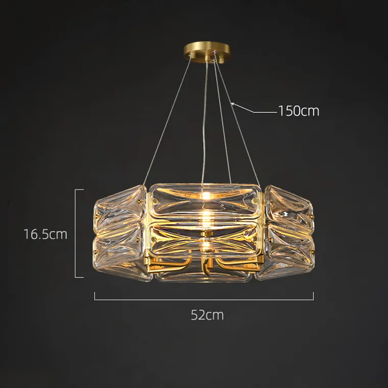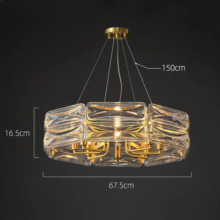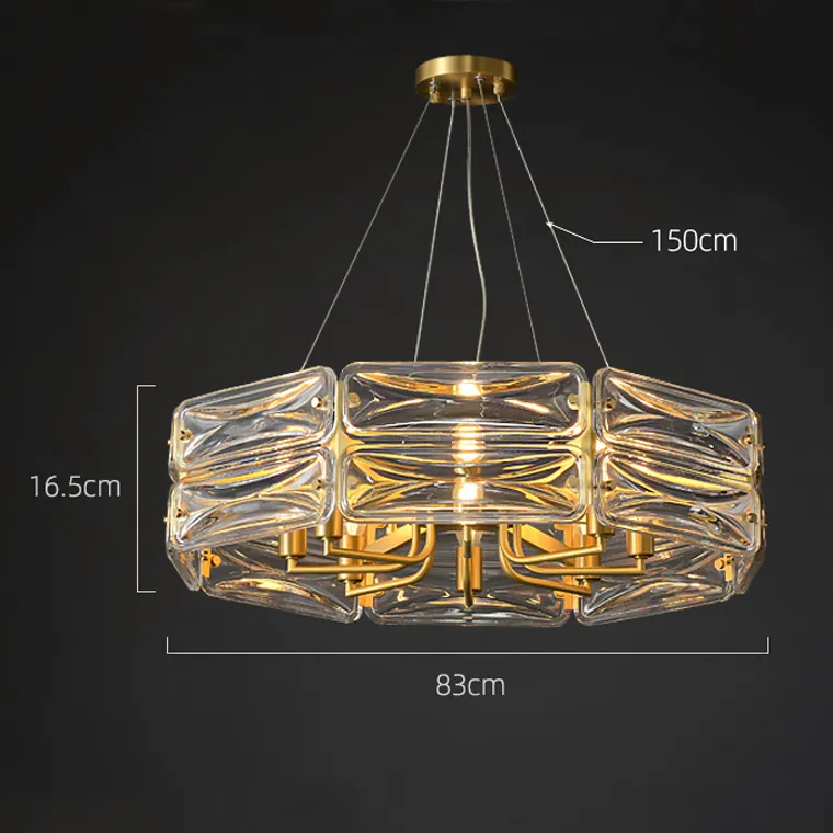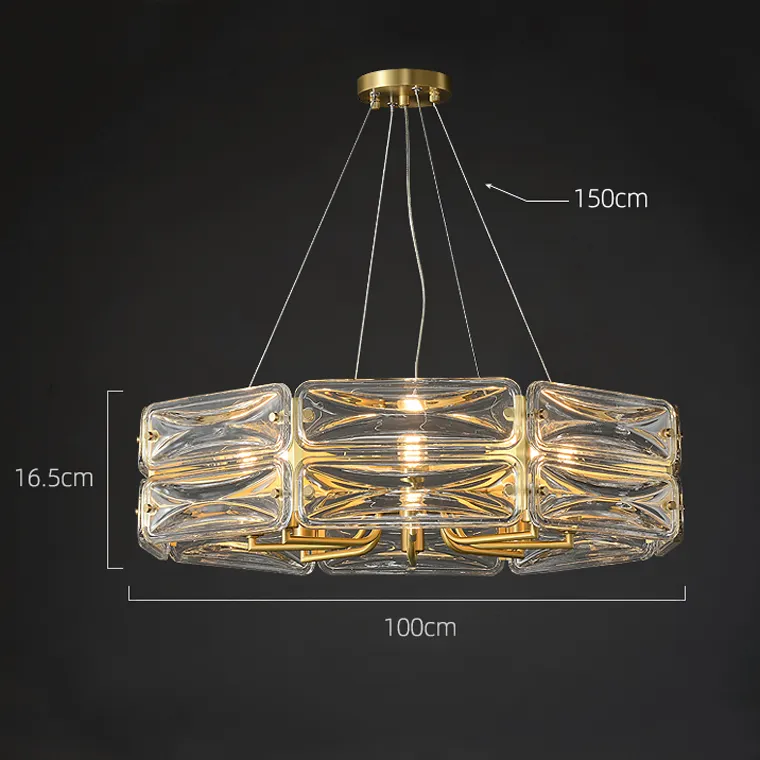 Серия кольцевых дизайнерских люстр с прямоугольными рассеивателями из выдувного стекла