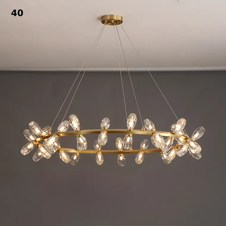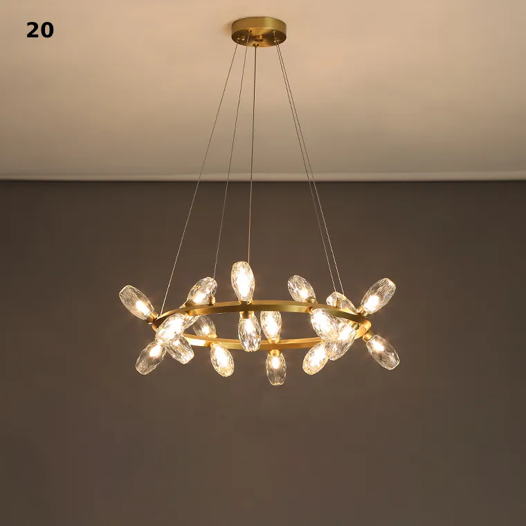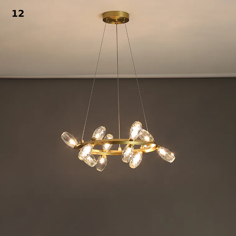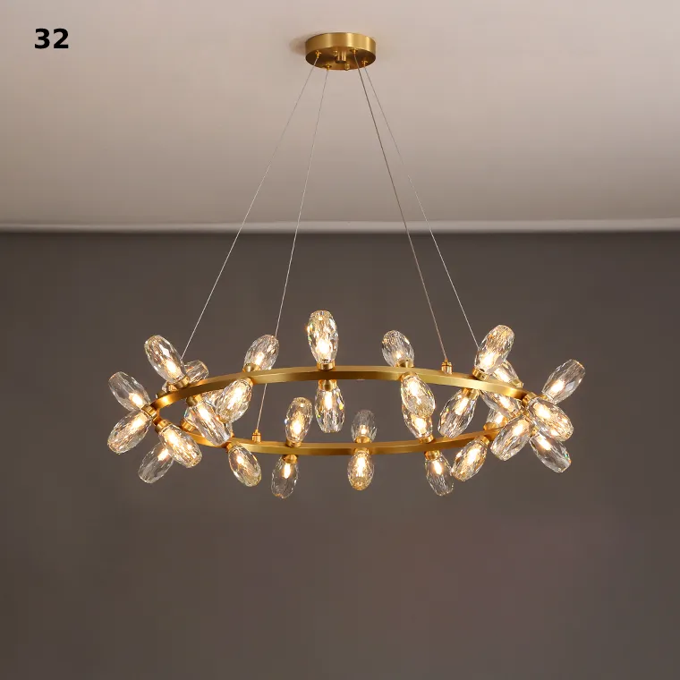 Серия кольцевых люстр с многогранными плафонами из хрусталя на латунном каркасе
