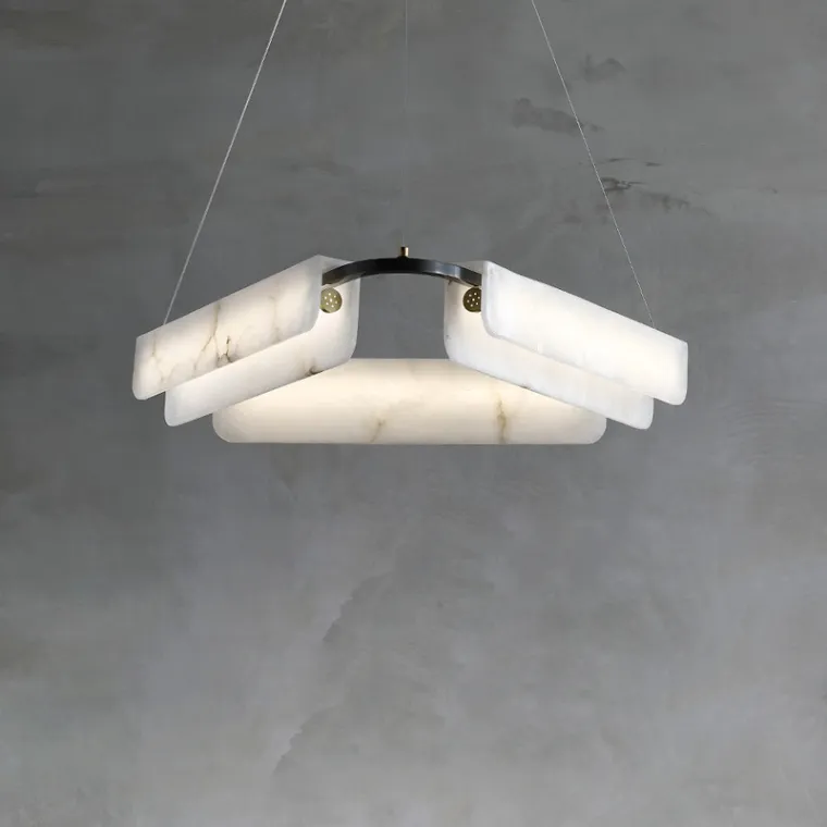 Серия светодиодных люстр на струнном подвесе с цилиндрическим плафонами в мраморных рассеивателях прямоугольной формы