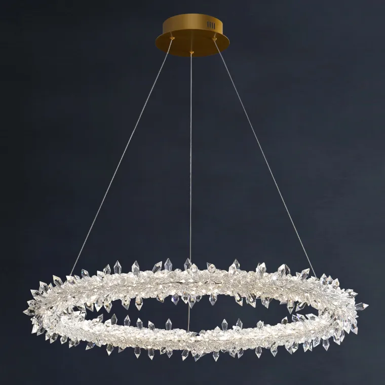 Модель SIBYL для интерьеров с претензией на статус с «галактическим» скоплением стеклянных кристаллов оригинальной формы на кольцевом каркасе. Высокое качество сборки, металлический каркас и изумительный внешний вид – достойны вашего интерьера!