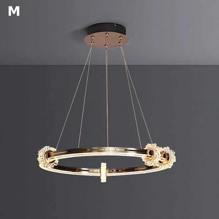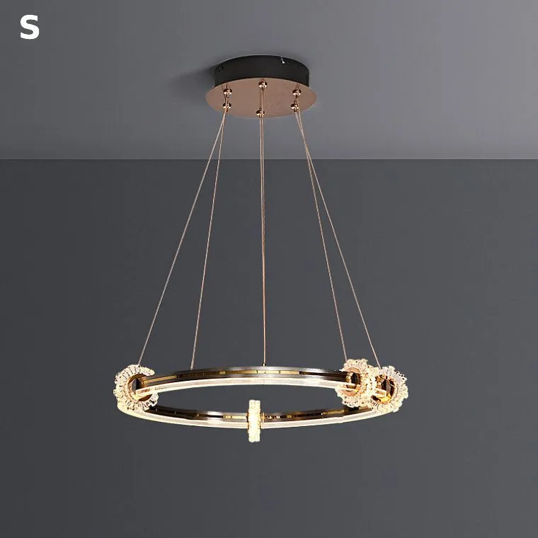 Серия светодиодных люстр с декоративными элементами в виде колец с кристаллами на кольцевом корпусе