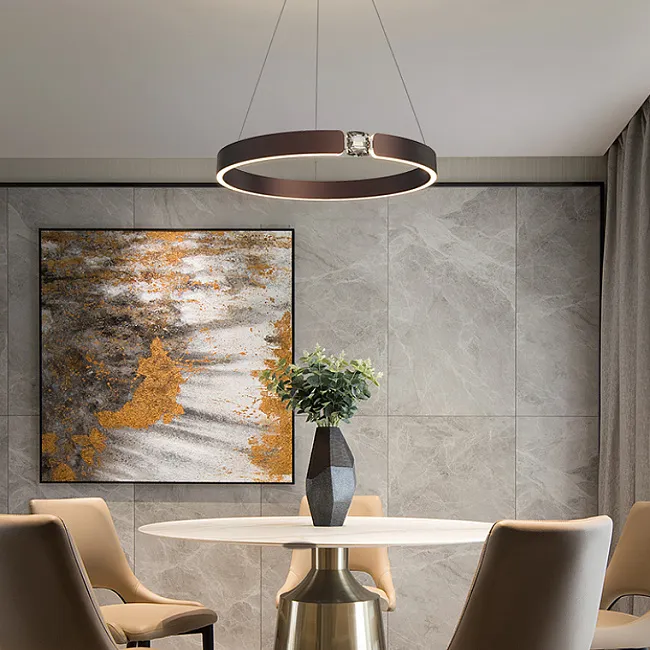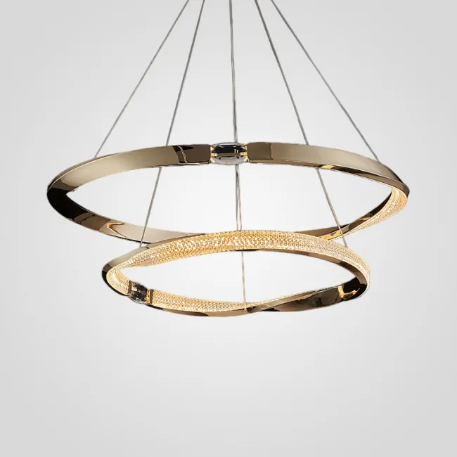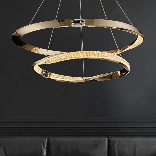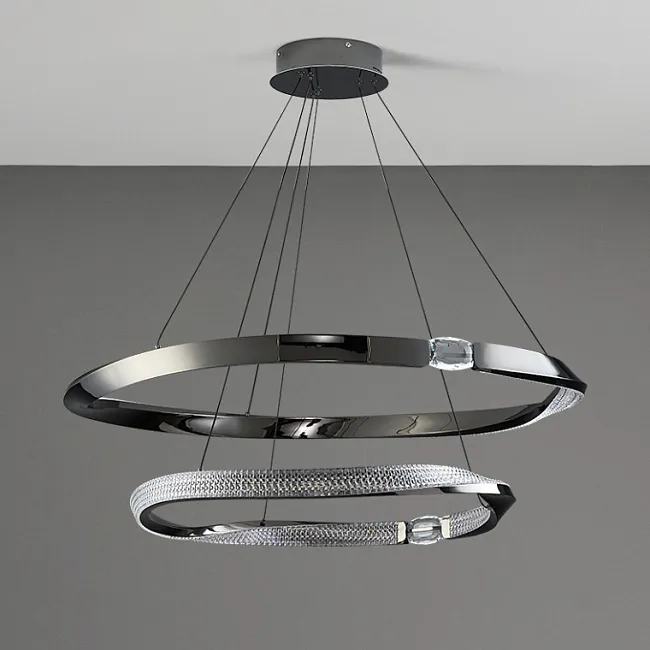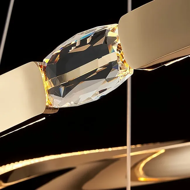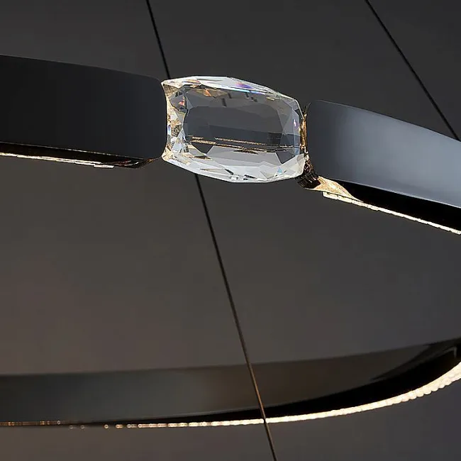 Серия светодиодных люстр с декоративными элементами в виде колец с кристаллами на кольцевом корпусе