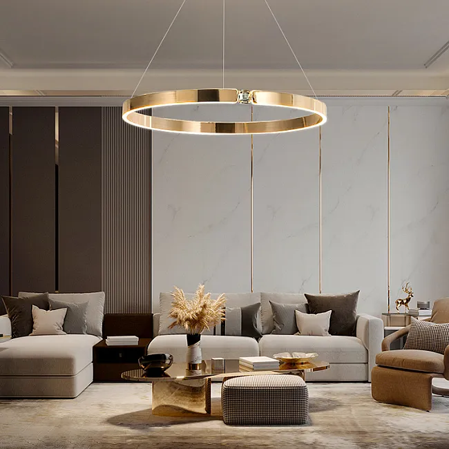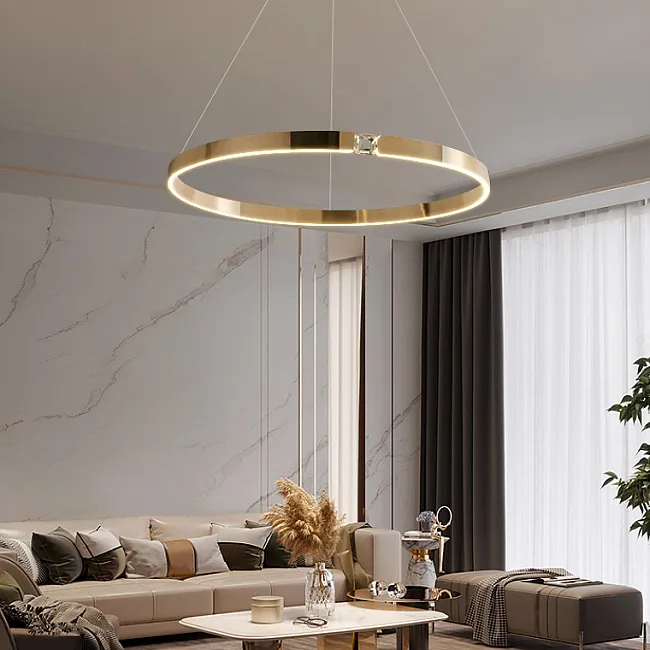 Заказывали люстру для кухни-гостиной. Каркас из металла - на него, как на браслет одеты бусмны-плафоны из оргстекла (это, кстати, полиметилметакрилат — специально уточняли в инете, важная для нас штука!). Выбрали модель «кольцо в кольце» — выглядит необычно, как два светящихся обруча — воздушно и современно