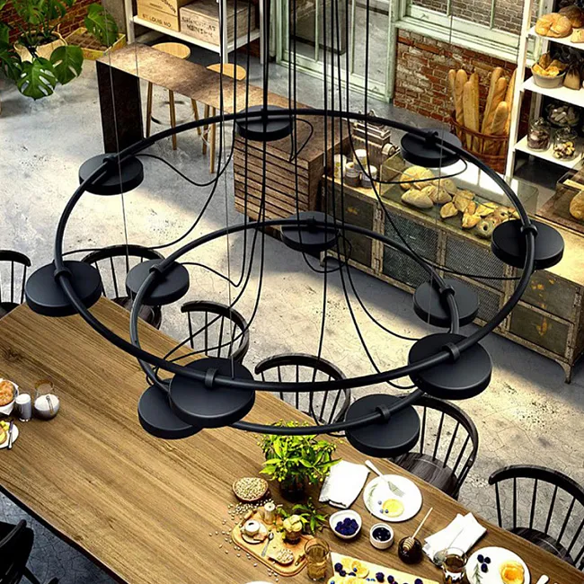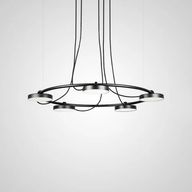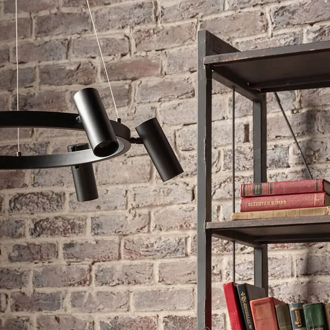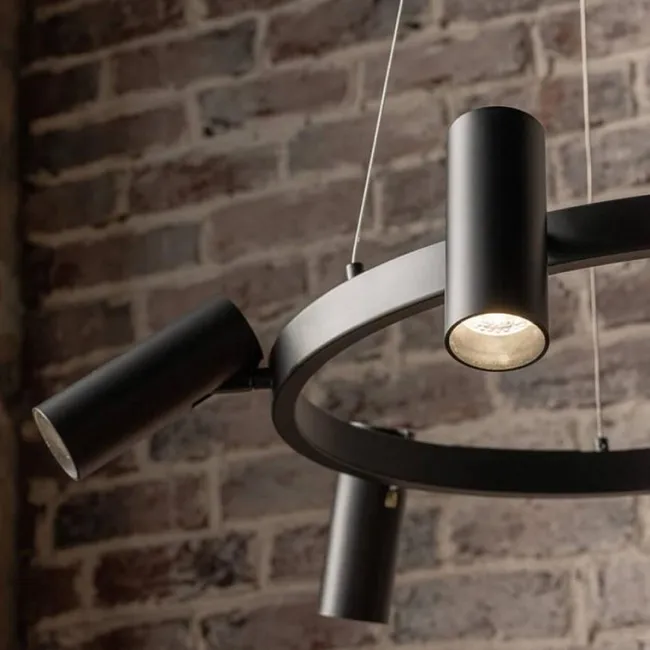 Кольцевая люстра SPOOR с поворотными спотами – весьма интересное решение для современных интерьеров в стиле лофт и сканди. Светильник, помимо своей экстравагантности и нестандартности, ещё и очень практичен, ведь вы сами сможете направлять световой поток в нужную вам сторону. Модель будет уместна в домашних интерьерах и общественных заведениях – пабах, кофейнях, салонах красоты, барбер-шопах.