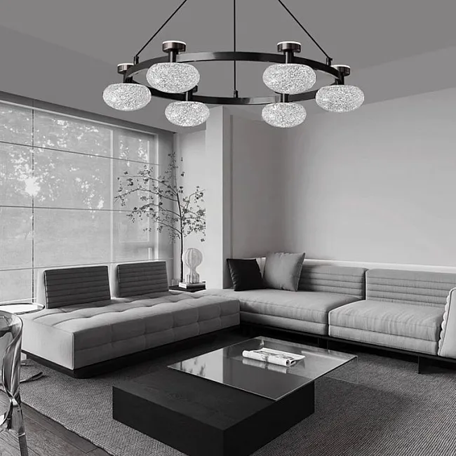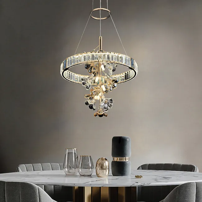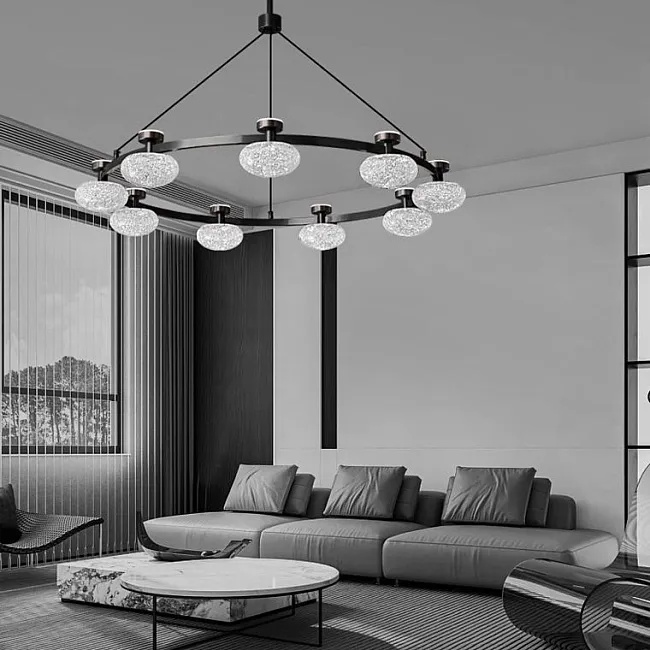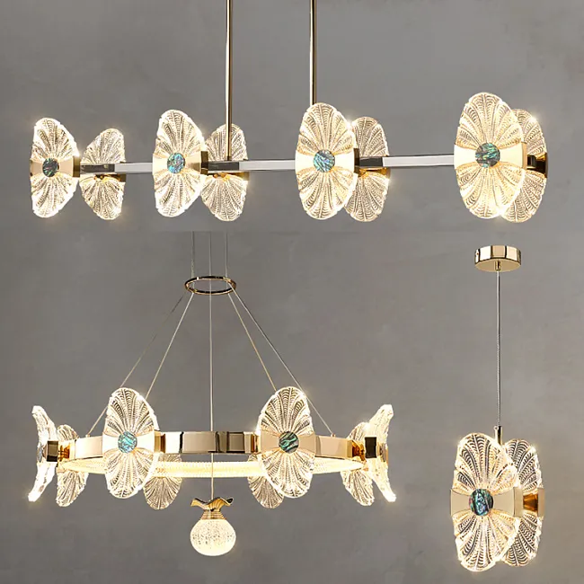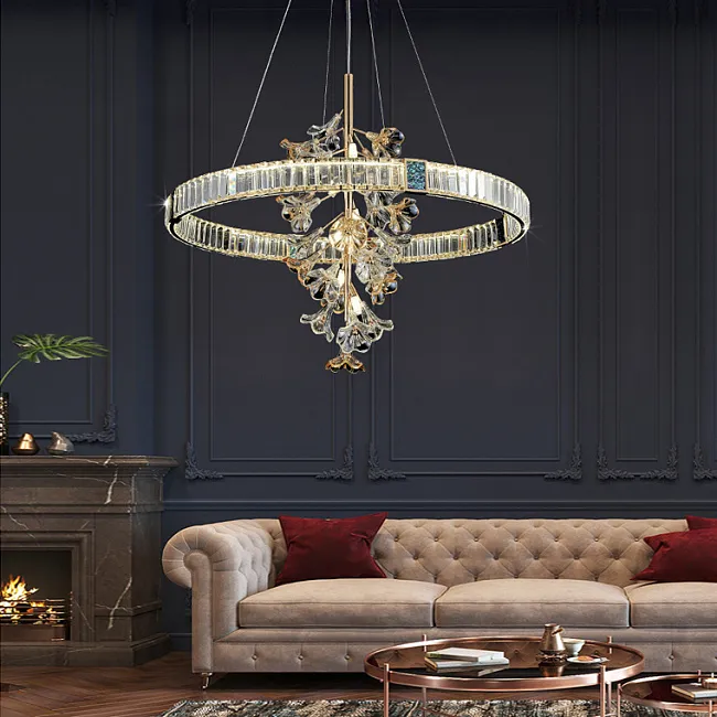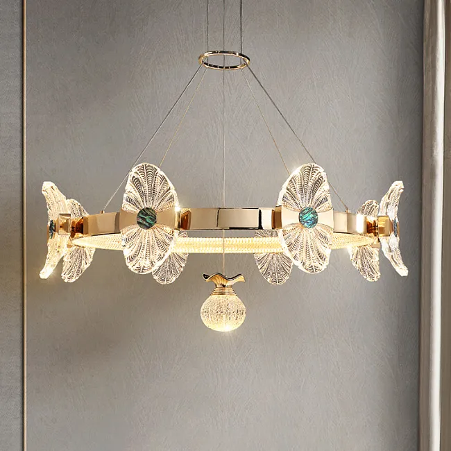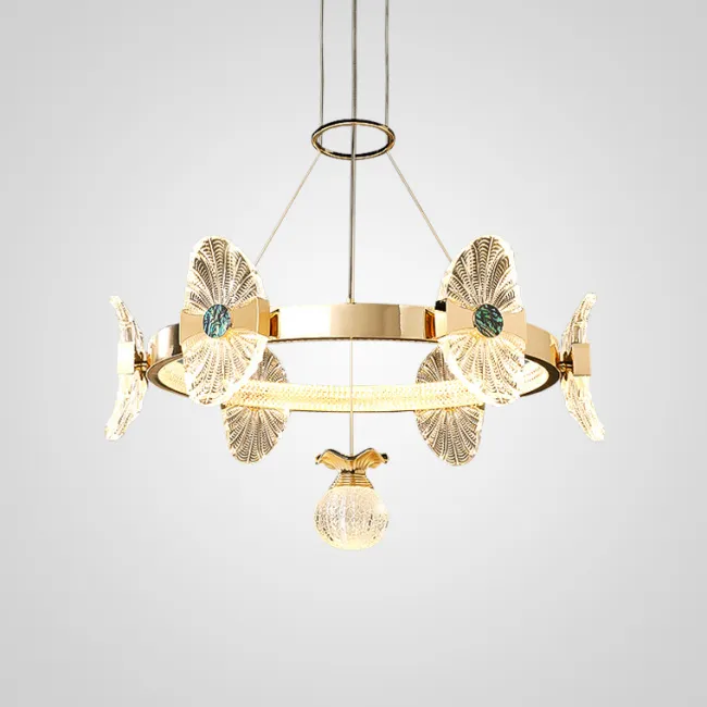 Серия кольцевых люстр с хрустальными рассеивателями в виде бабочек с каплевидными подвесками