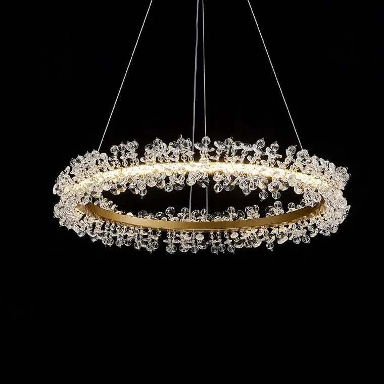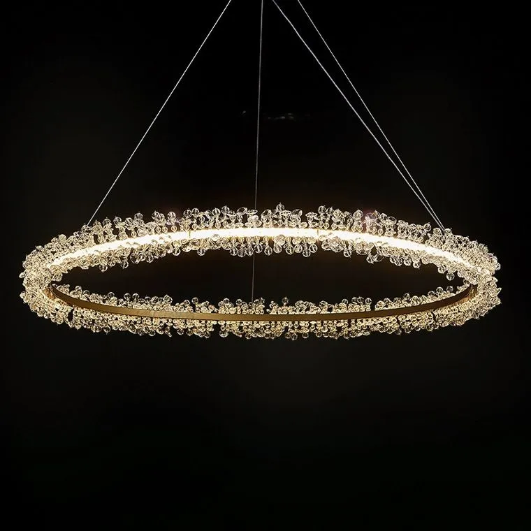 Светодиодная кольцевая люстра THERA с декором из граненых стеклянных бусин.