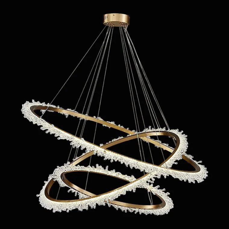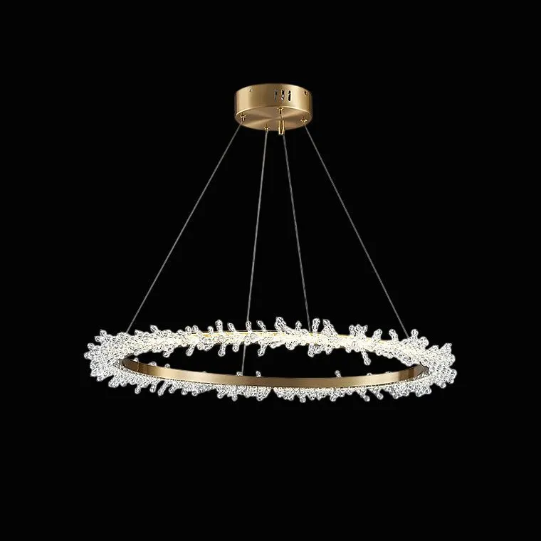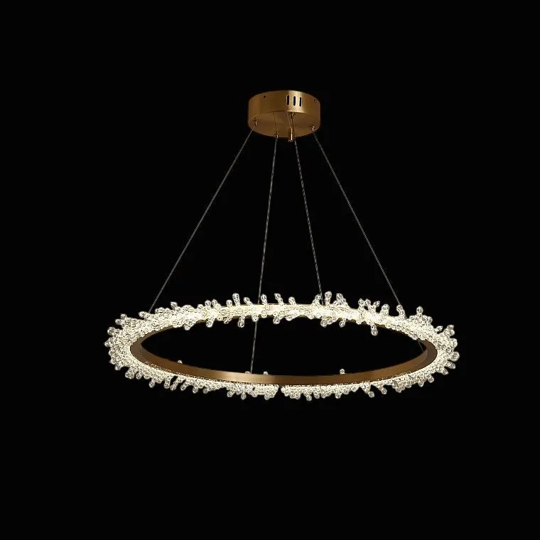 Светодиодная люстра с декором из граненых стеклянных бусин на кольцевом каркасе