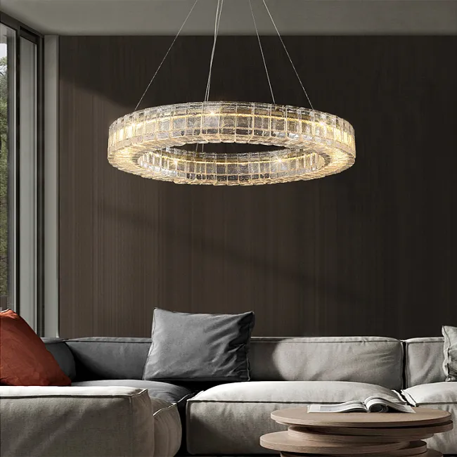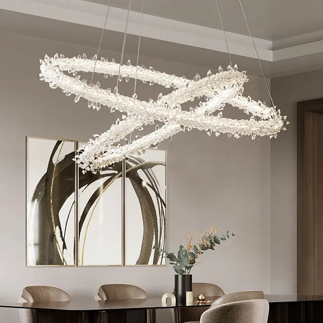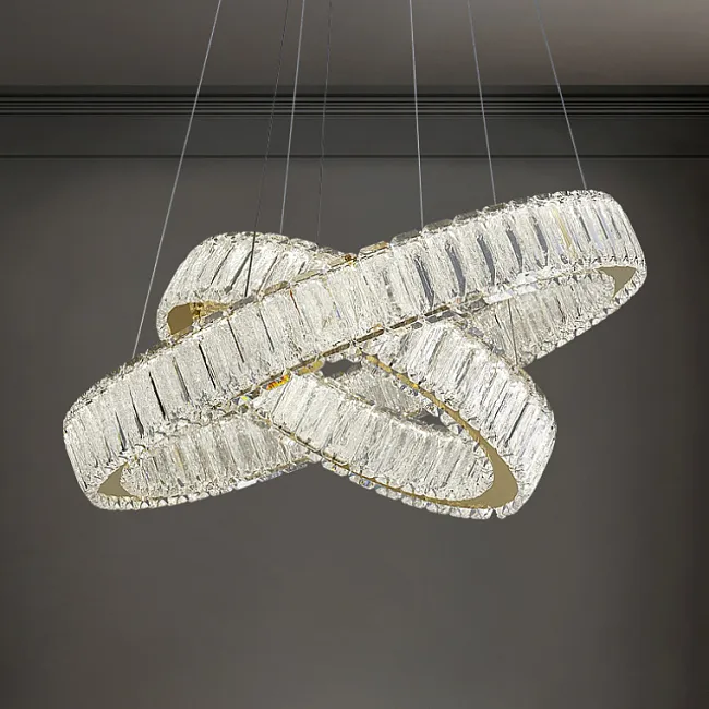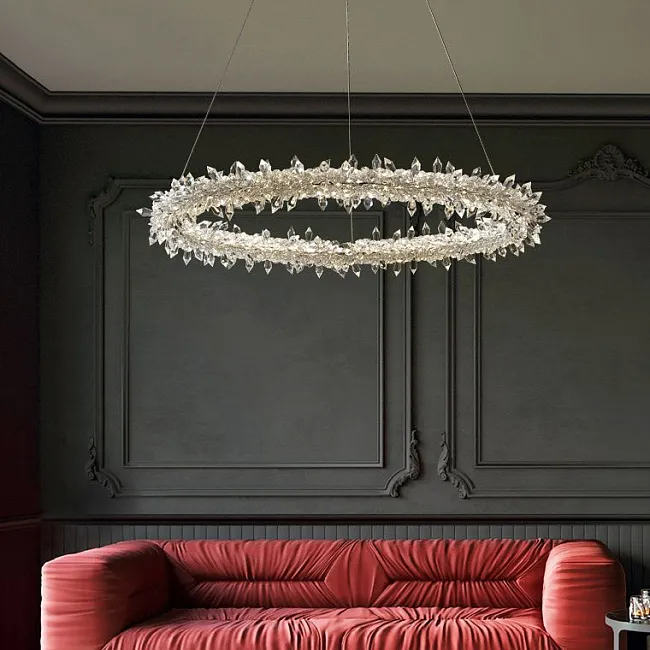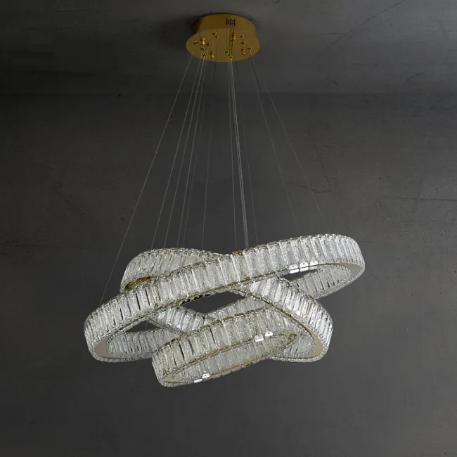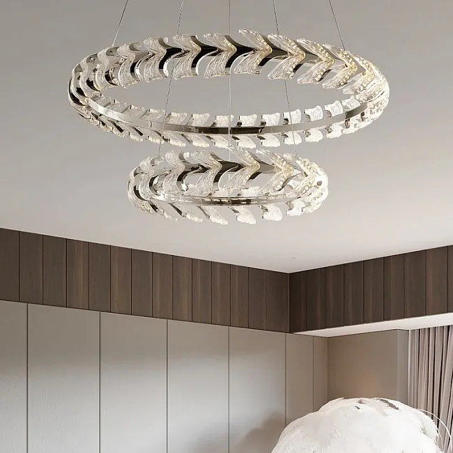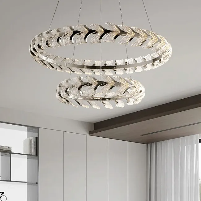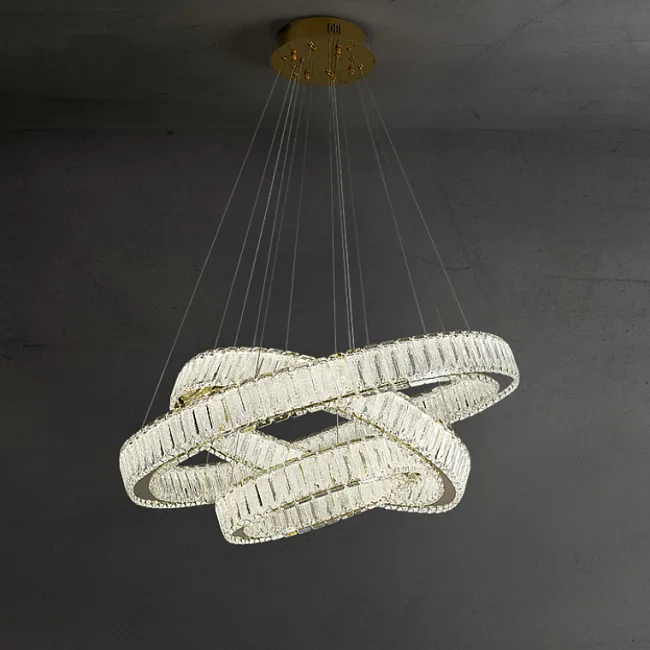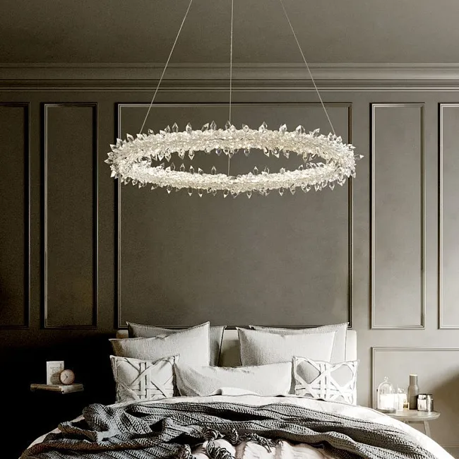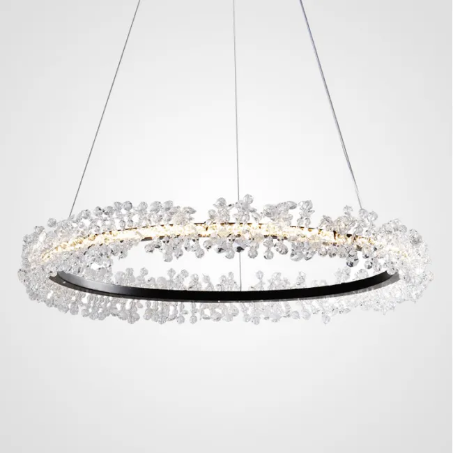 Светодиодная люстра с декором из граненых стеклянных бусин на кольцевом каркасе
