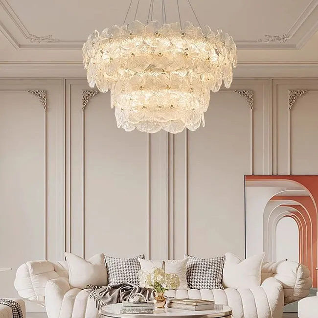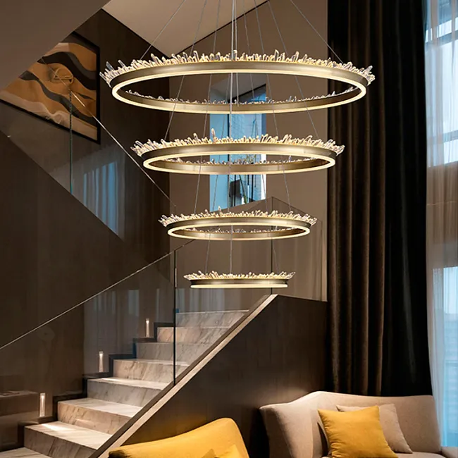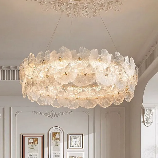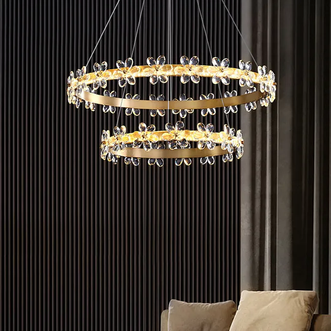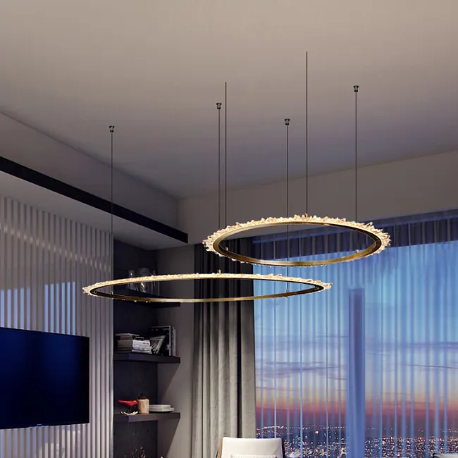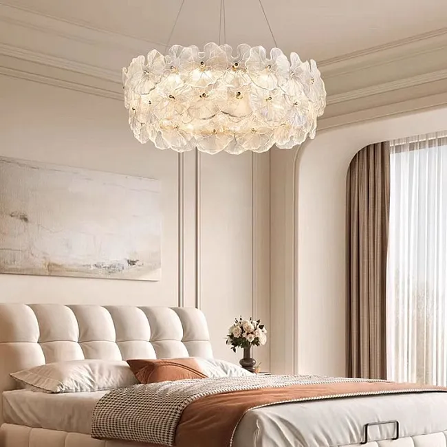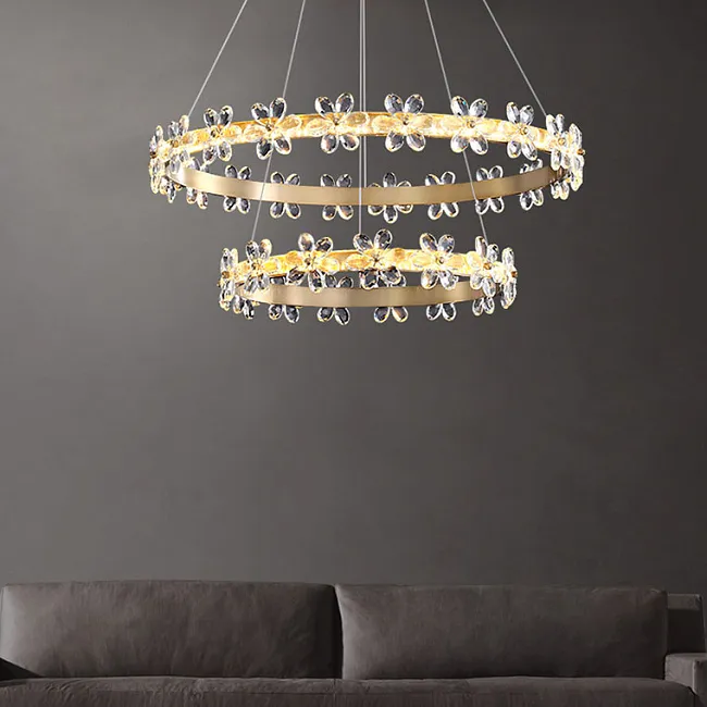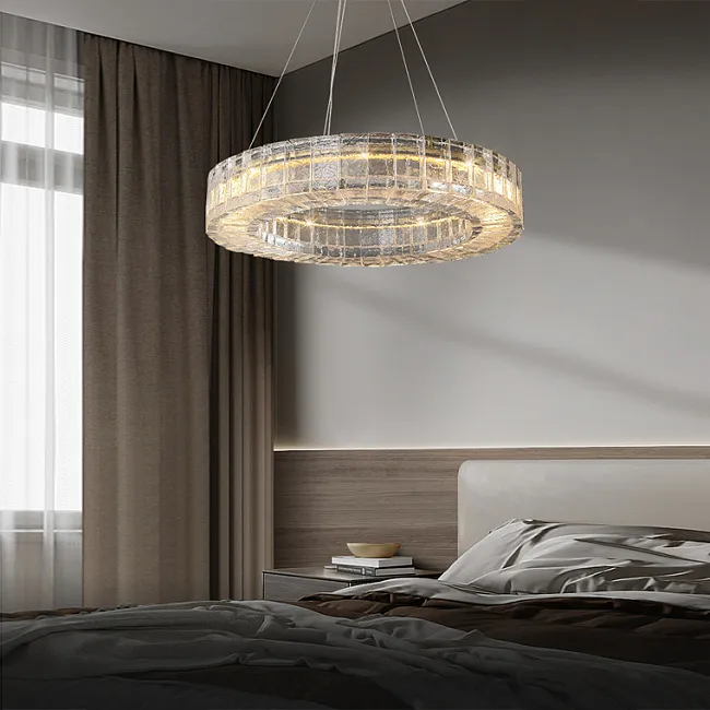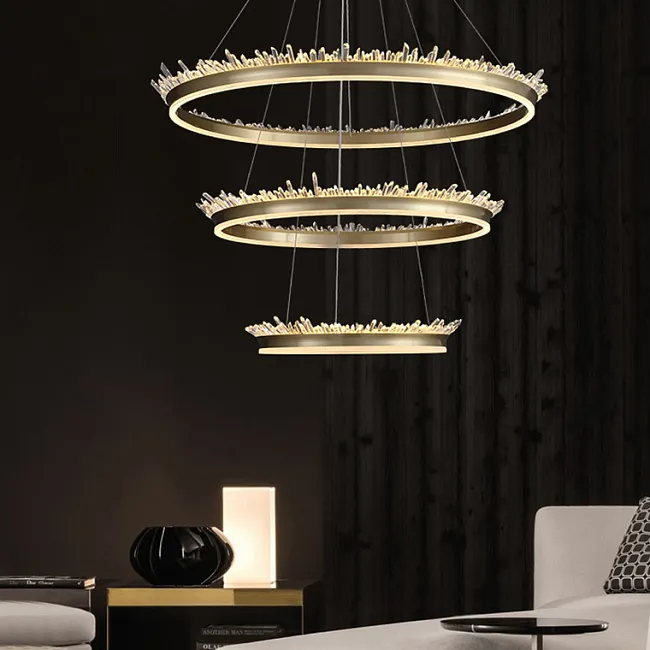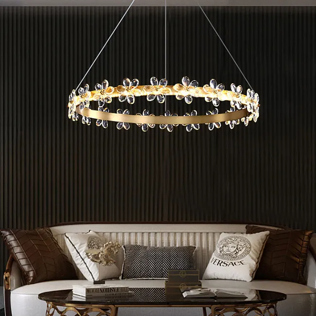 Светодиодная люстра с декором из граненых стеклянных бусин на кольцевом каркасе
