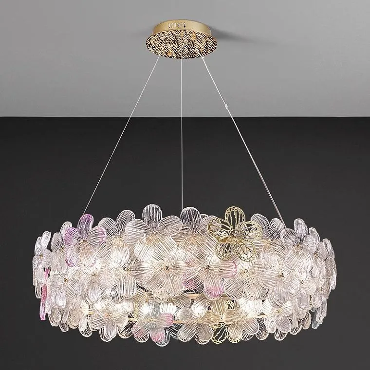 Создайте свой уникальный уютный уголок, наполненный теплом и волшебством, с помощью светодиодной люстры TOTTI с цветочным декором из стекла.