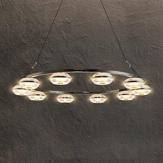 Представьте себе мгновение, когда вы входите в свою спальню или гостиную и вас встречает поистине волшебное зрелище. Серия кольцевых светодиодных люстр с двойными плафонами и стеклянными рельефными рассеивателями с эффектом льда – это симфония света и стиля, способная превратить любой интерьер в шедевр. Черный латунный корпус, излучающий смелую элегантность, соединен с дымчатыми плафонами из стекла ручной работы, создавая уникальное сочетание современности и изящества.
