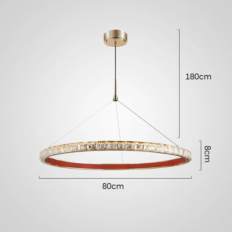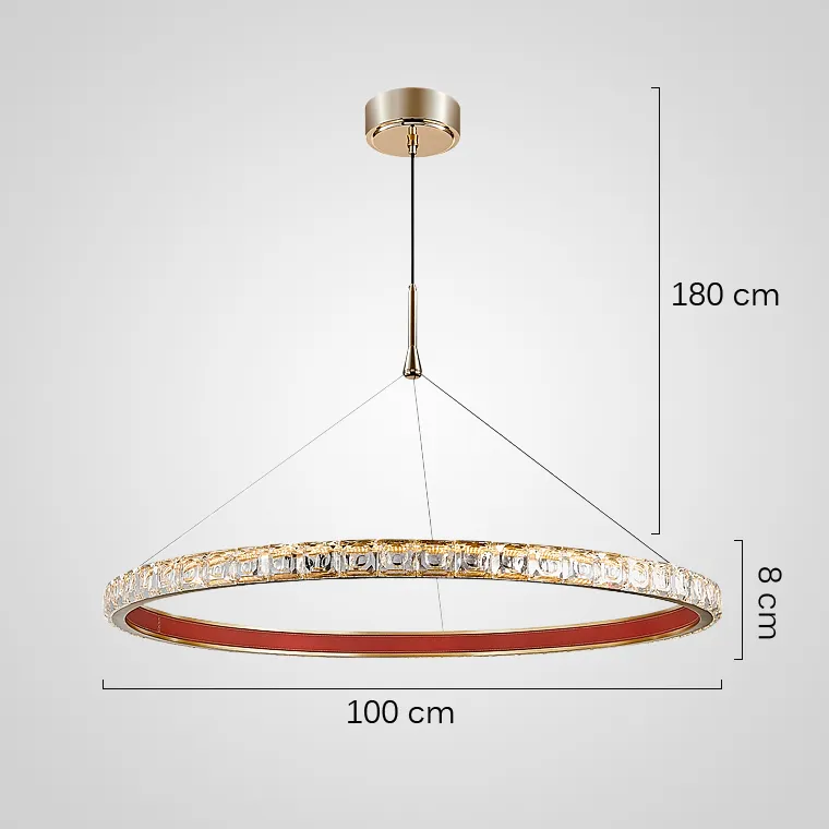 Серия минималистичных кольцевых люстр с окантовкой из кожи и вставками из хрустальных рассеивателей