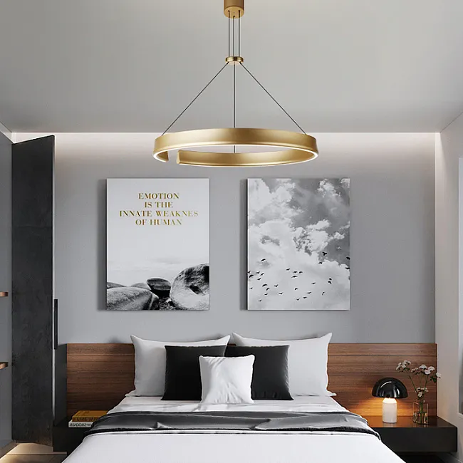 Серия светодиодных люстр в виде комбинации разомкнутых колец разного диаметра