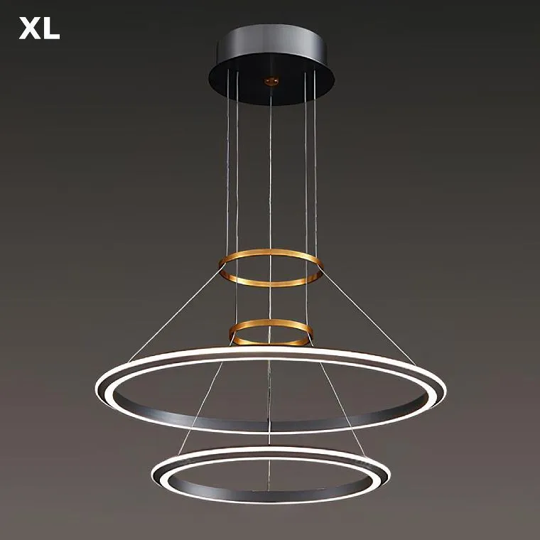 Серия кольцевых светодиодных люстр с LED-подсветкой по контуру черного матового корпуса
