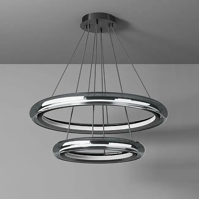 Серия кольцевых светодиодных люстр с LED-подсветкой по контуру черного матового корпуса