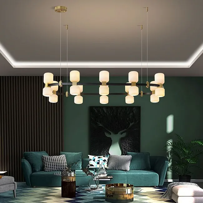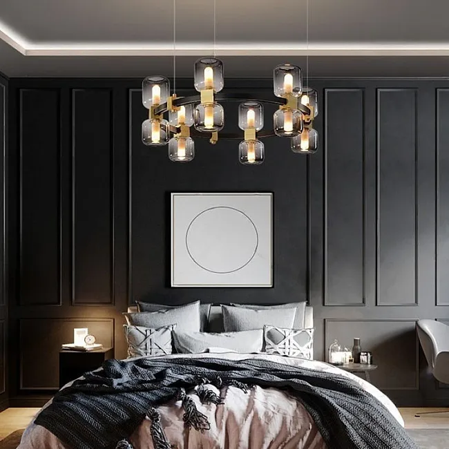 Дизайнер предложил эту модель светильника для спальни - и по цене и по дизайну, действительно - оптимальный вариант. Люстра в реальности очень красивая, фото не передает в должной мере.