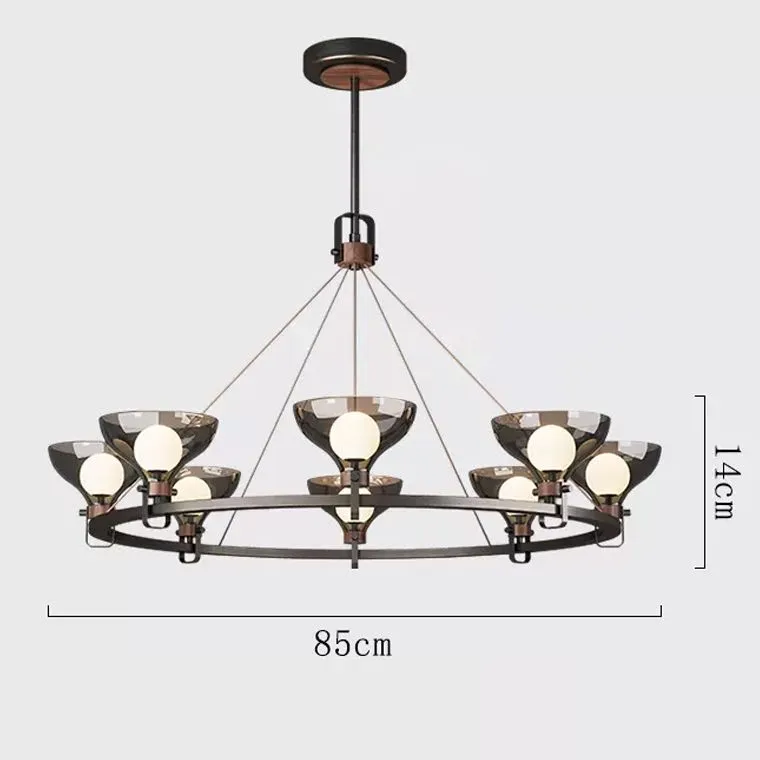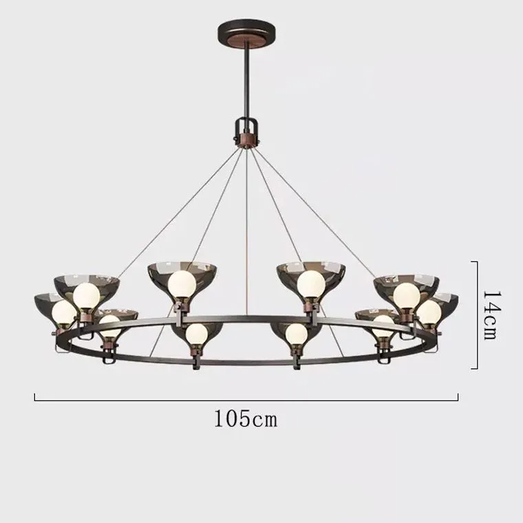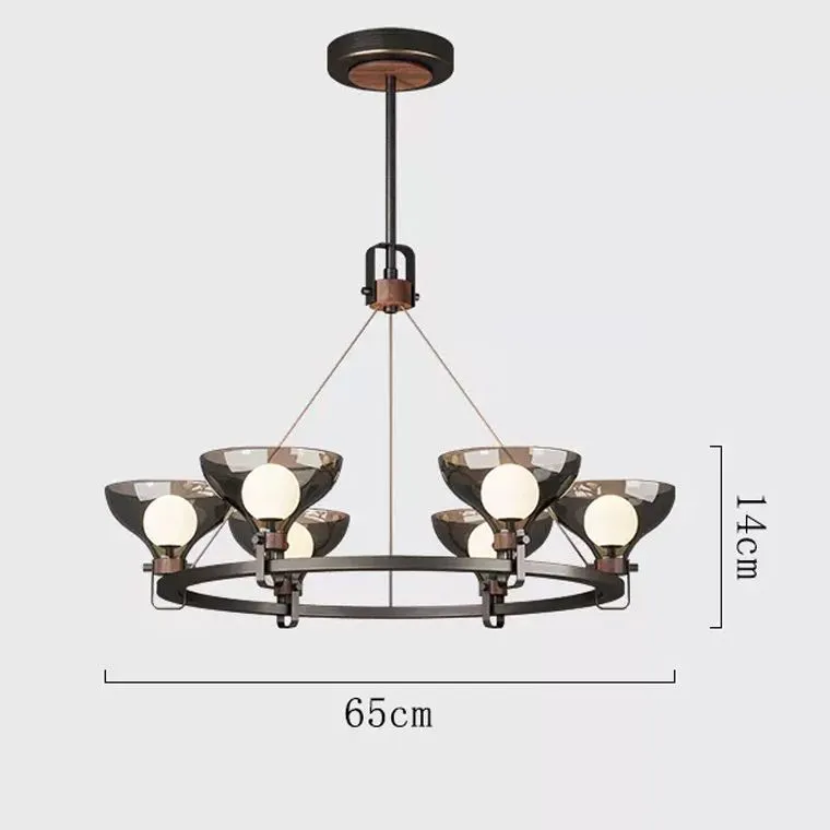 Кольцевой корпус, выполненный из благородной черненой латуни, подчеркивает отчетливый стиль и харизму изделия. Взлетая вверх, куполообразные дымчатые плафоны разливают мягкое сияние, распространяя уют и наполненность по всей комнате.