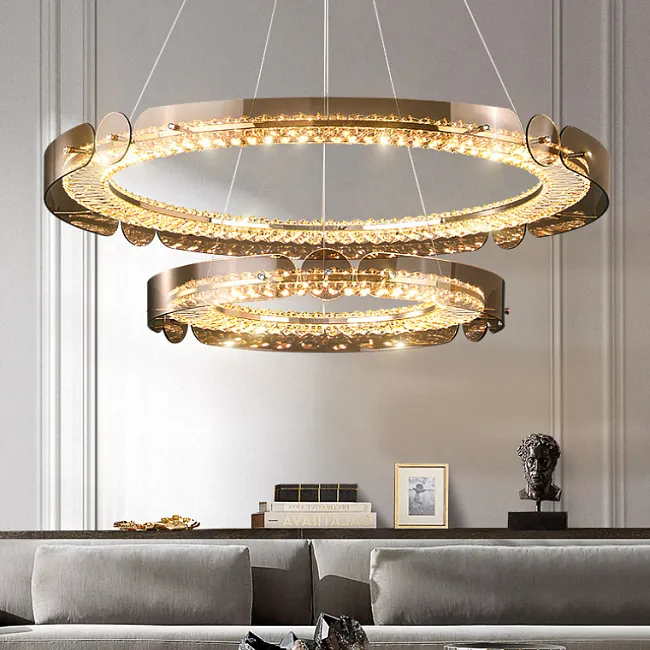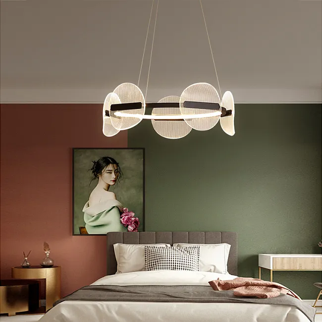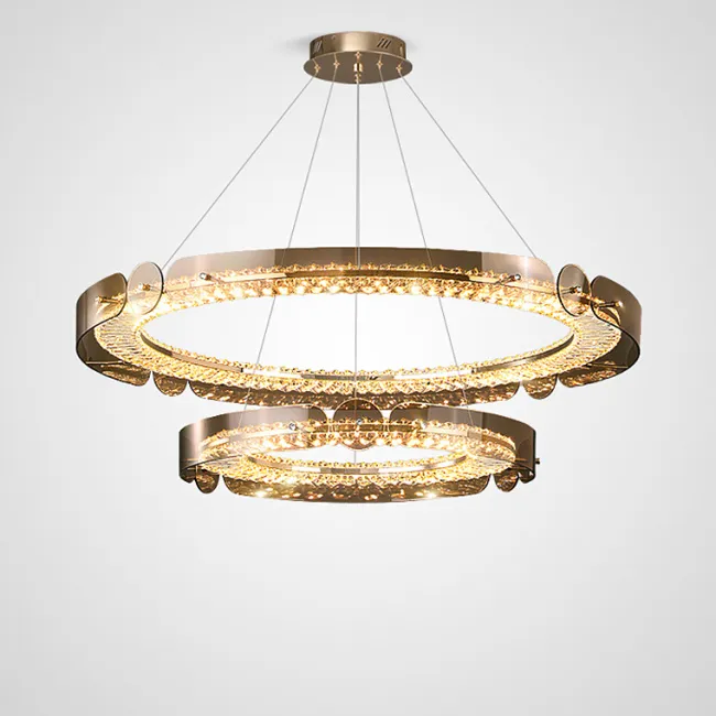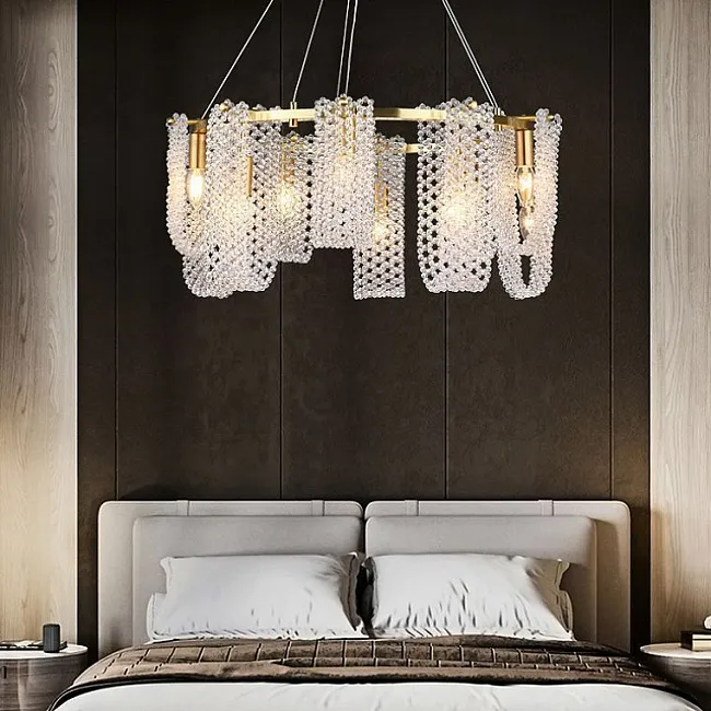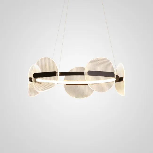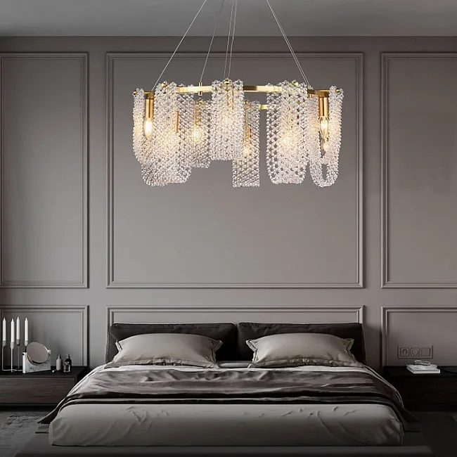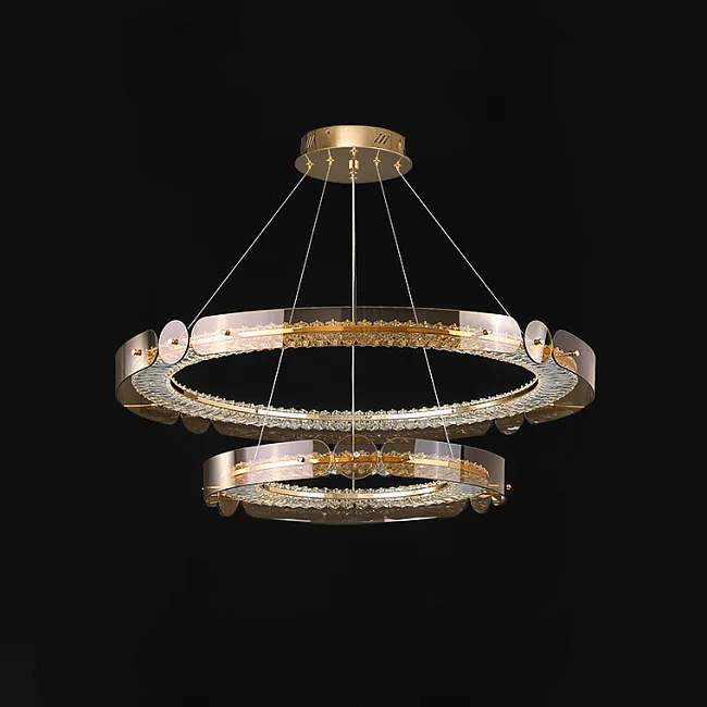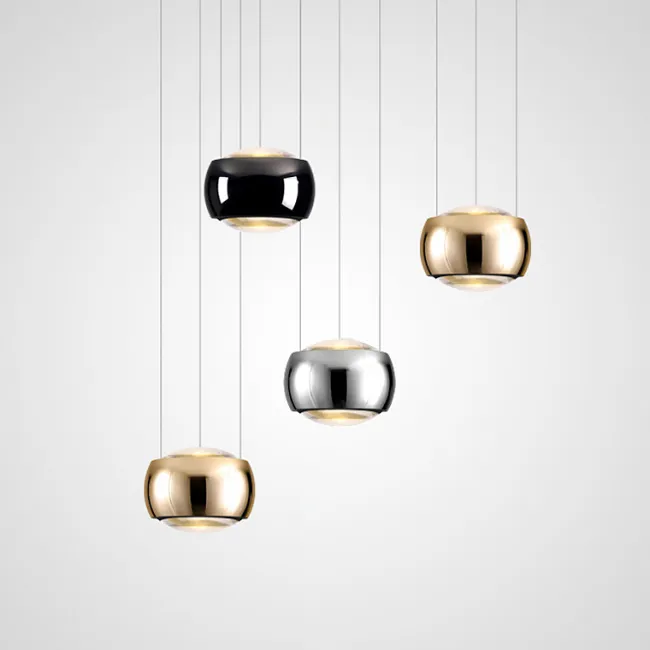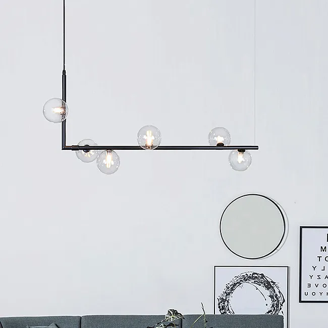 Люстра на струнном подвесе с шарообразными плафонами на кольцевом каркасе латунного
