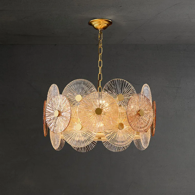 Подвесная люстра с рельефными боковыми дисками и нижним дополнительным рассеивателем