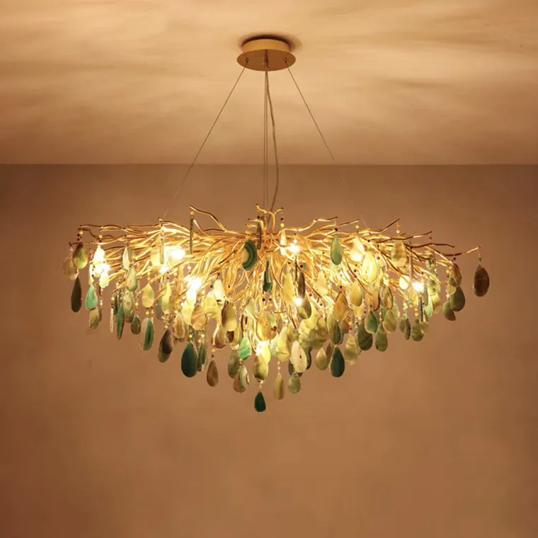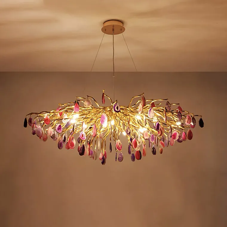 Серия дизайнерских люстр на струнном подвесе с подвесками из цветного натурального агата