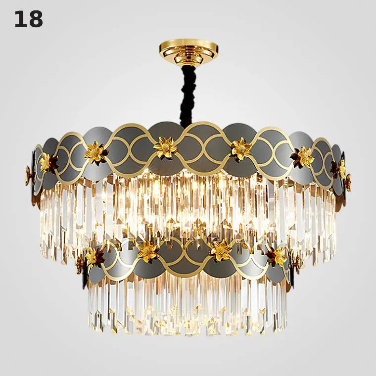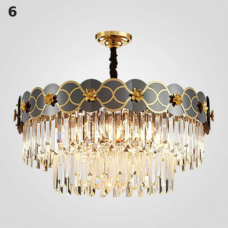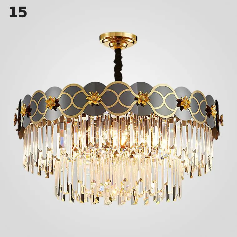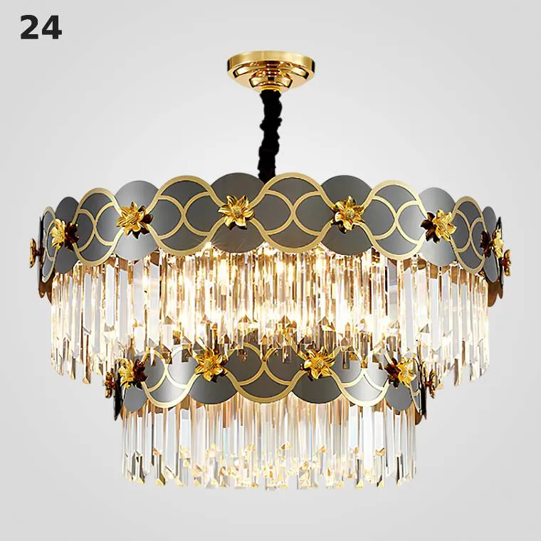 Серия подвесных люстр с рассеивателями из хрусталя и декоративным корпусом