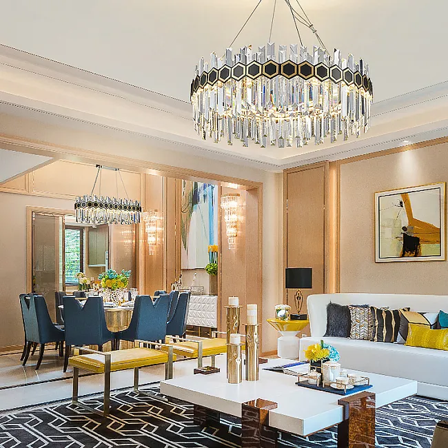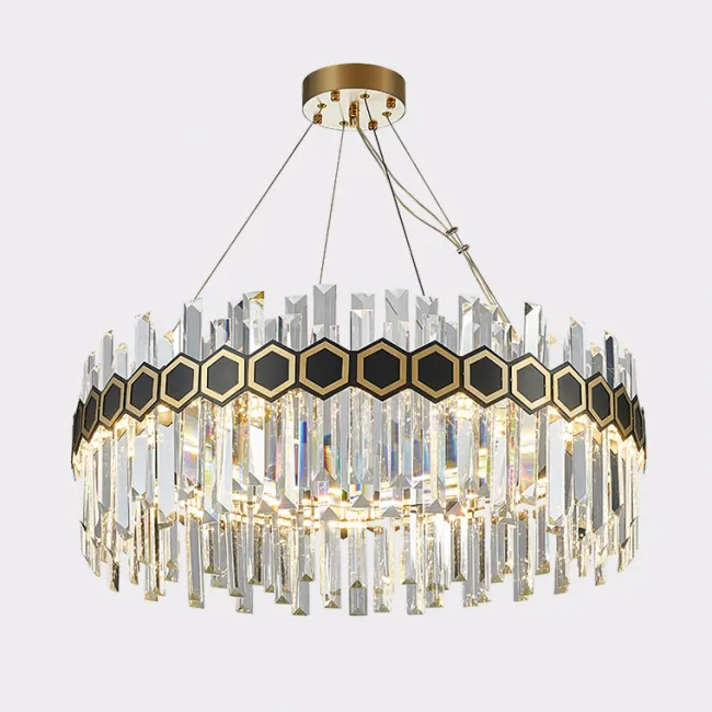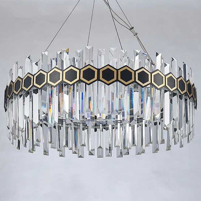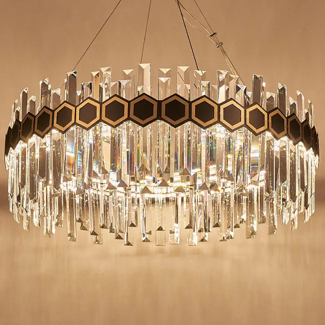 Серия подвесных люстр с рассеивателями из хрусталя и декоративным корпусом