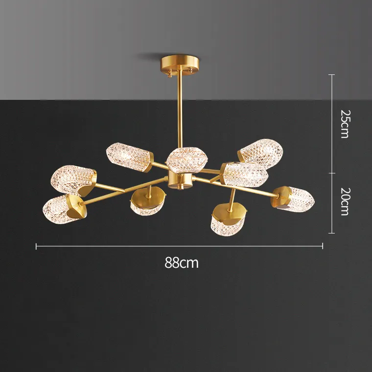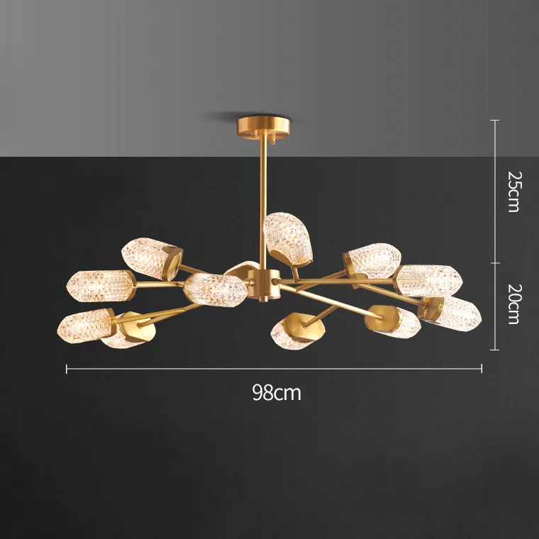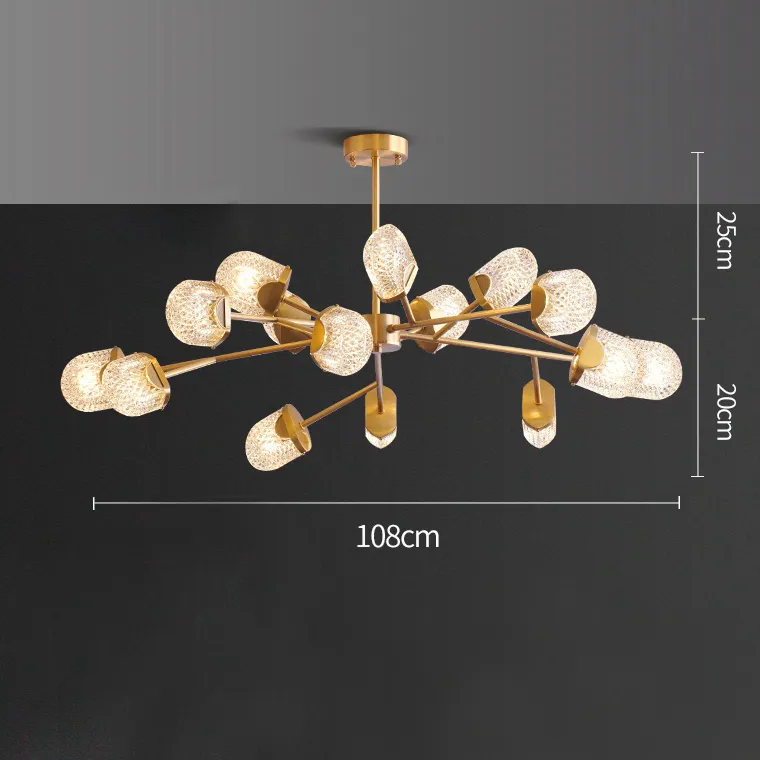 Серия дизайнерских люстр с округлыми стеклянными плафонами с панцирной поверхностью на разветвлённых рожках