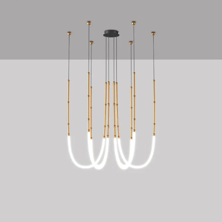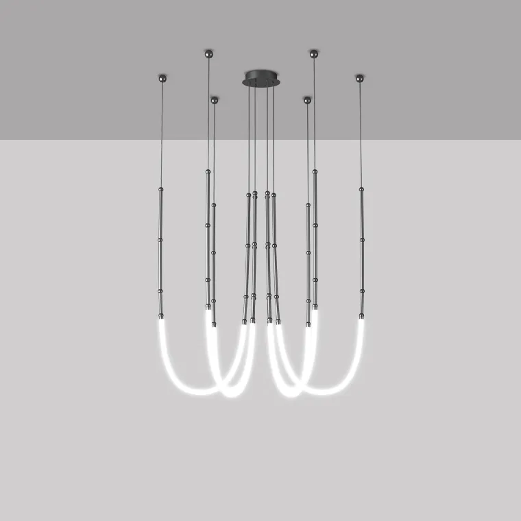 Светодиодная люстра-паук с декоративными шарами на трубчатых подвесах с C-образными световыми элементами